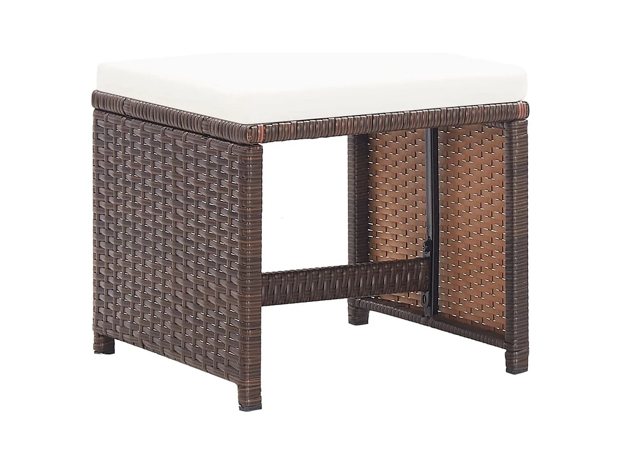 Repose-pied de jardin avec coussin marron résine tressée 2