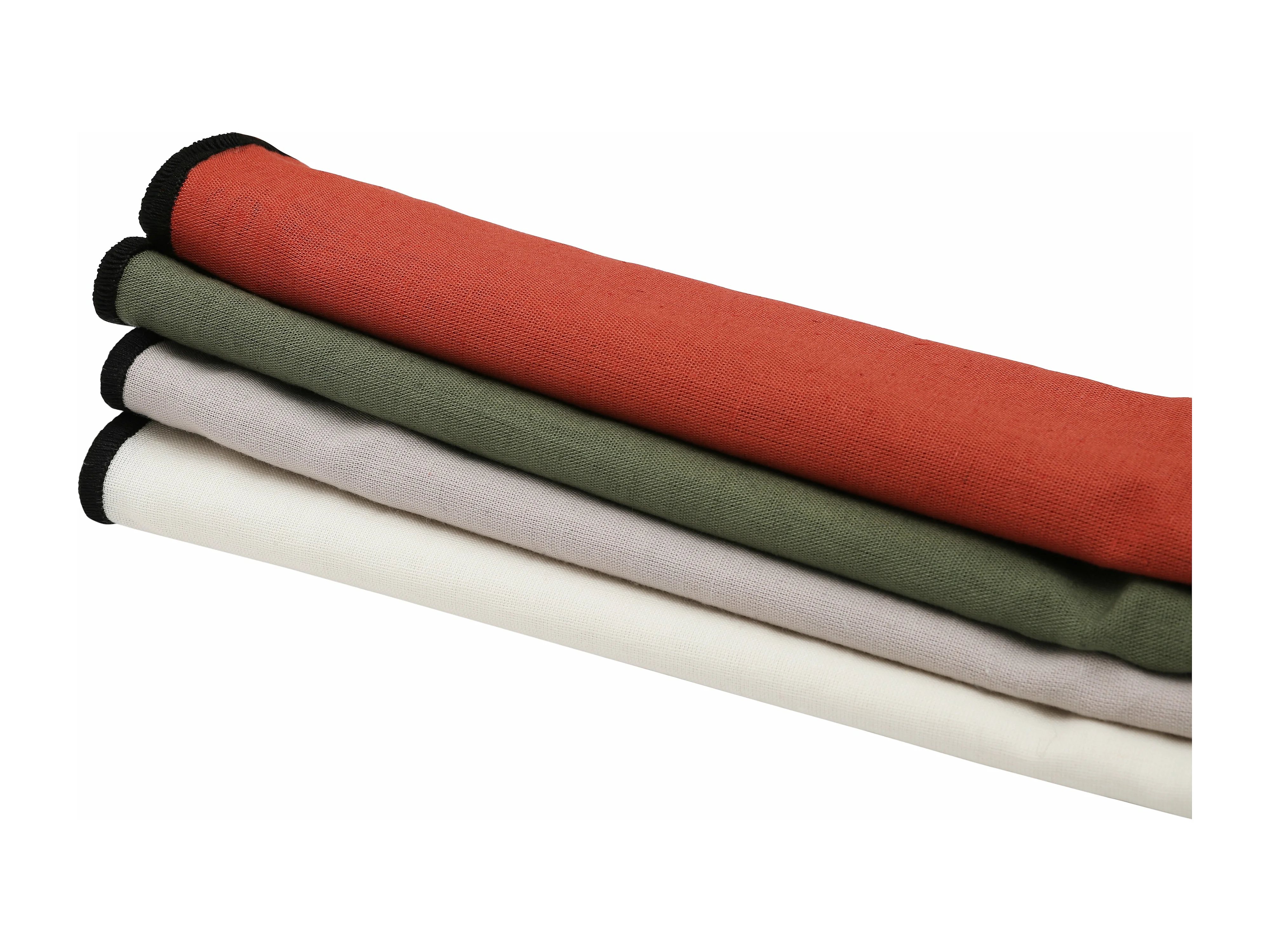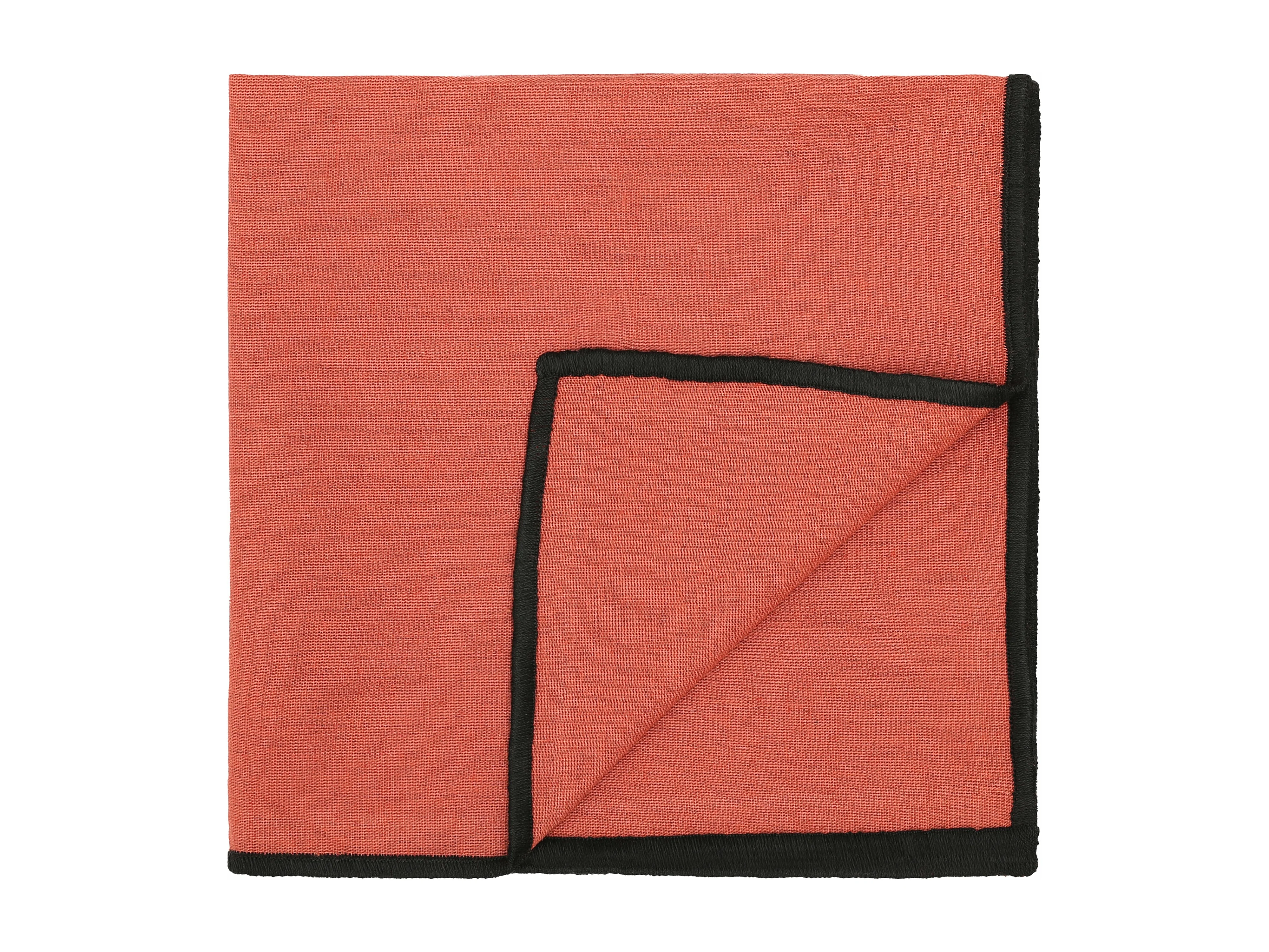 Lot de 4 serviettes de table en coton et lin terracotta bourdon noir 45x45cm