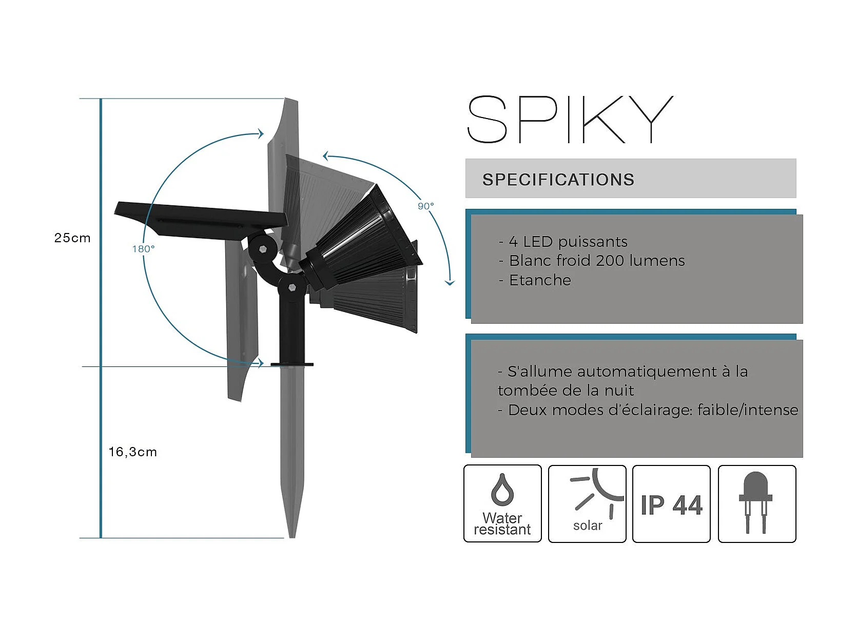 Lot de 4 spots solaires projecteurs SPIKY Noir Plastique 100LM