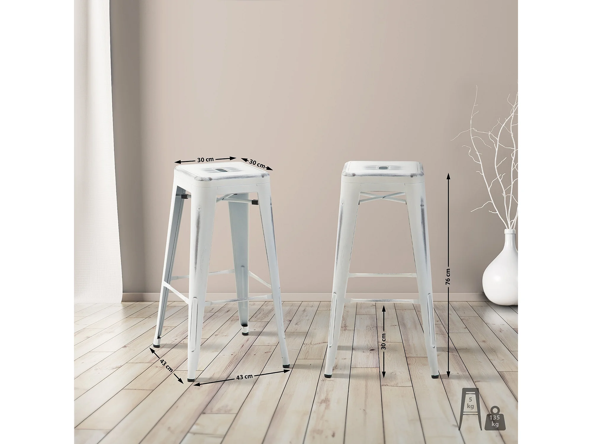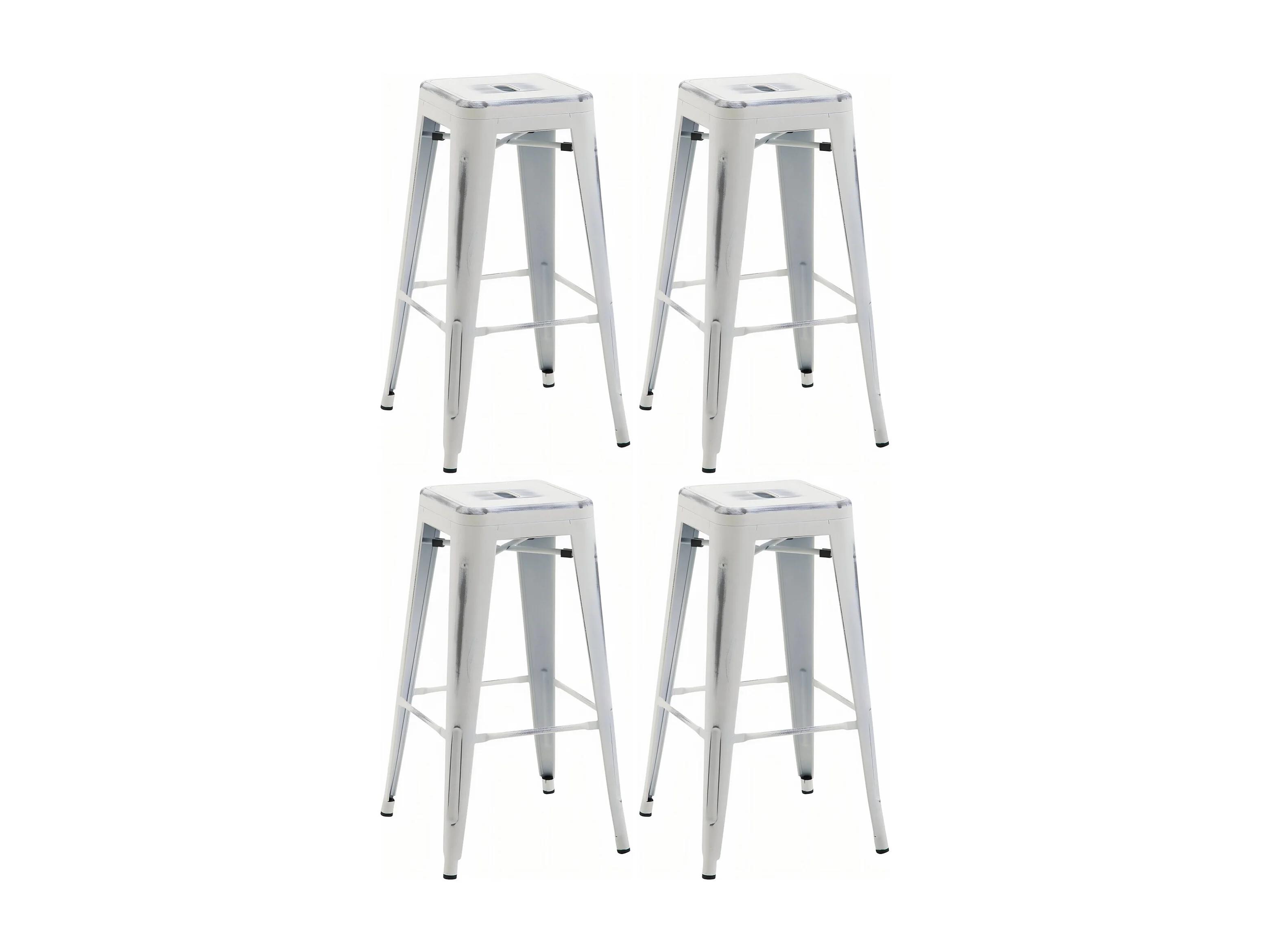 Lot de 4 Tabouret de bar - Métal - Blanc antique - Joshua