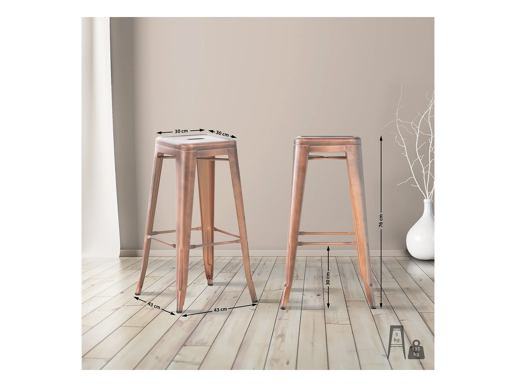 Lot de 4 Tabouret de bar - Métal - Cuivre - Joshua