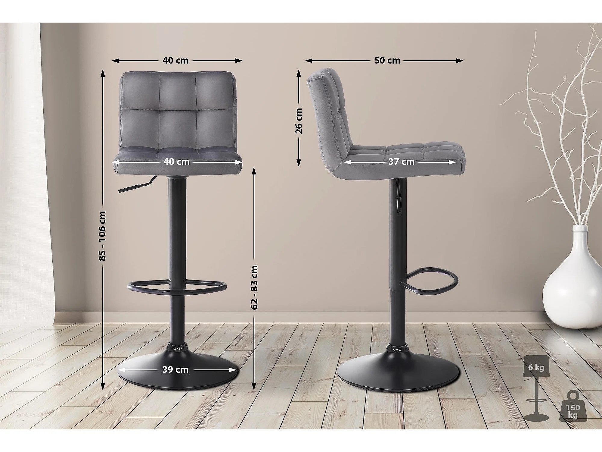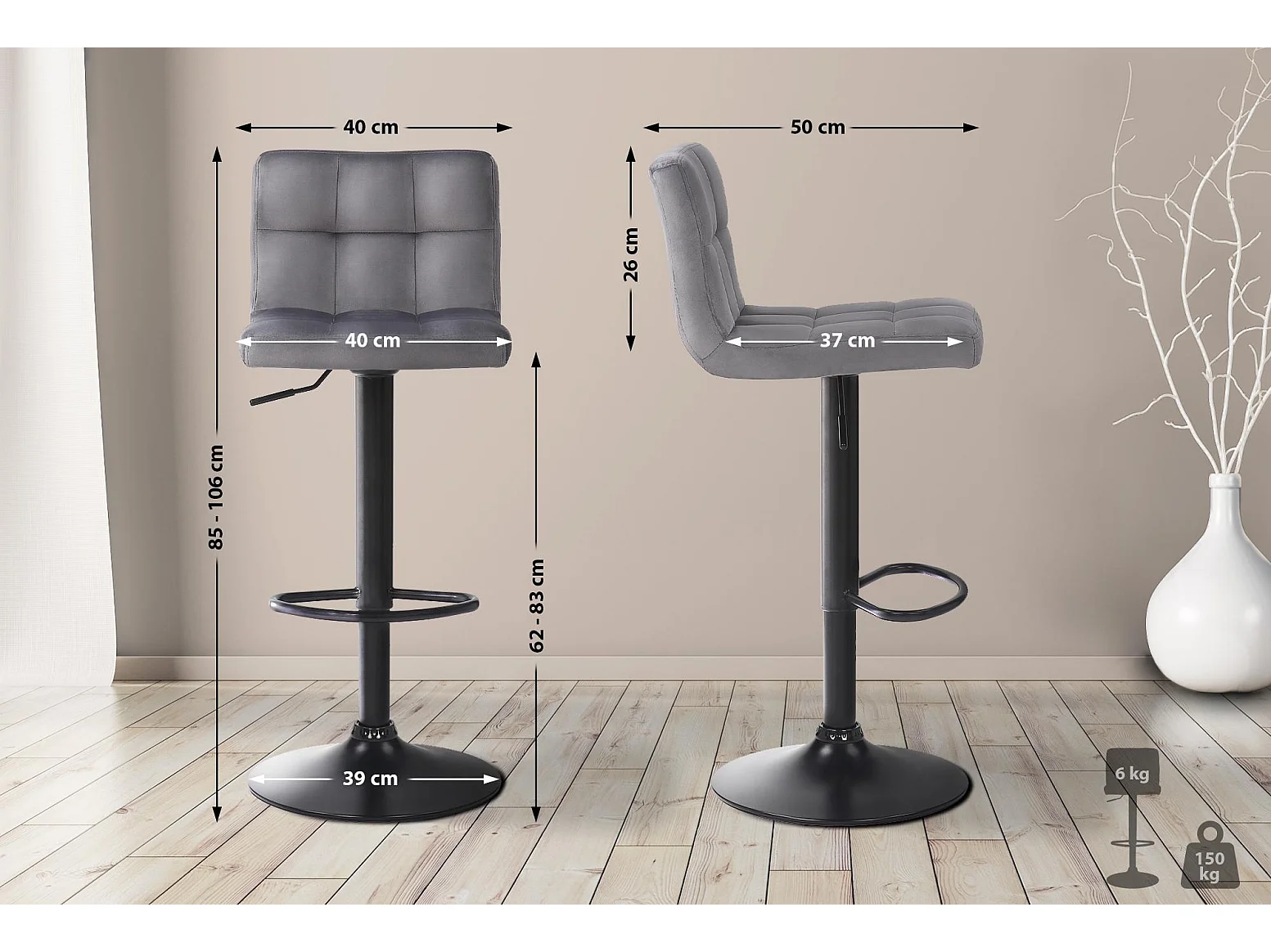 Lot de 4 Tabouret de bar - Velours - Gris - Feni