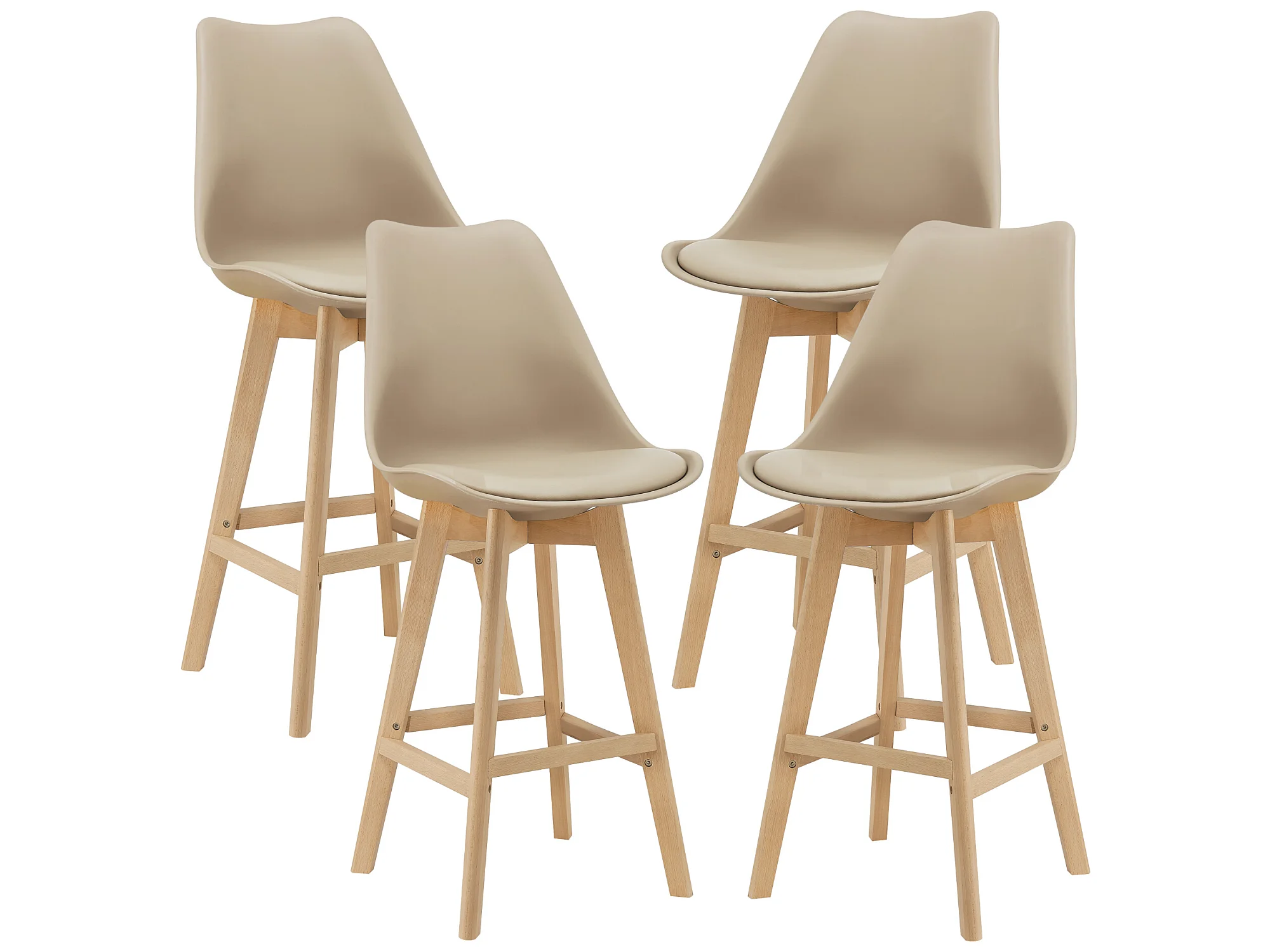 Lot de 4 Tabourets de Bar Lublin Plastique Simili Hêtre 105 x 48 x 58 cm Beige [en.casa]