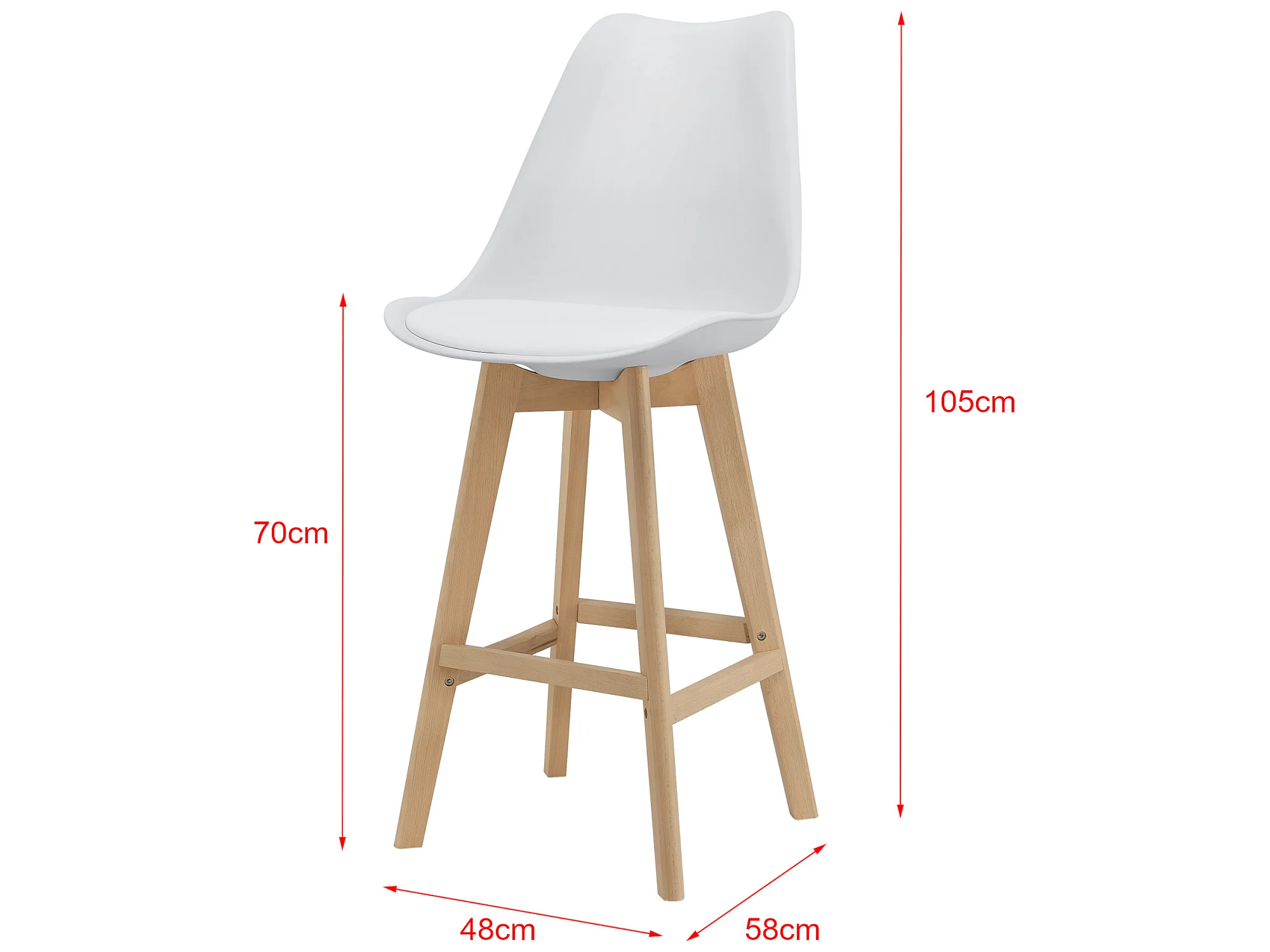 Lot de 4 Tabourets de Bar Lublin Plastique Simili Hêtre 105 x 48 x 58 cm Blanc [en.casa]