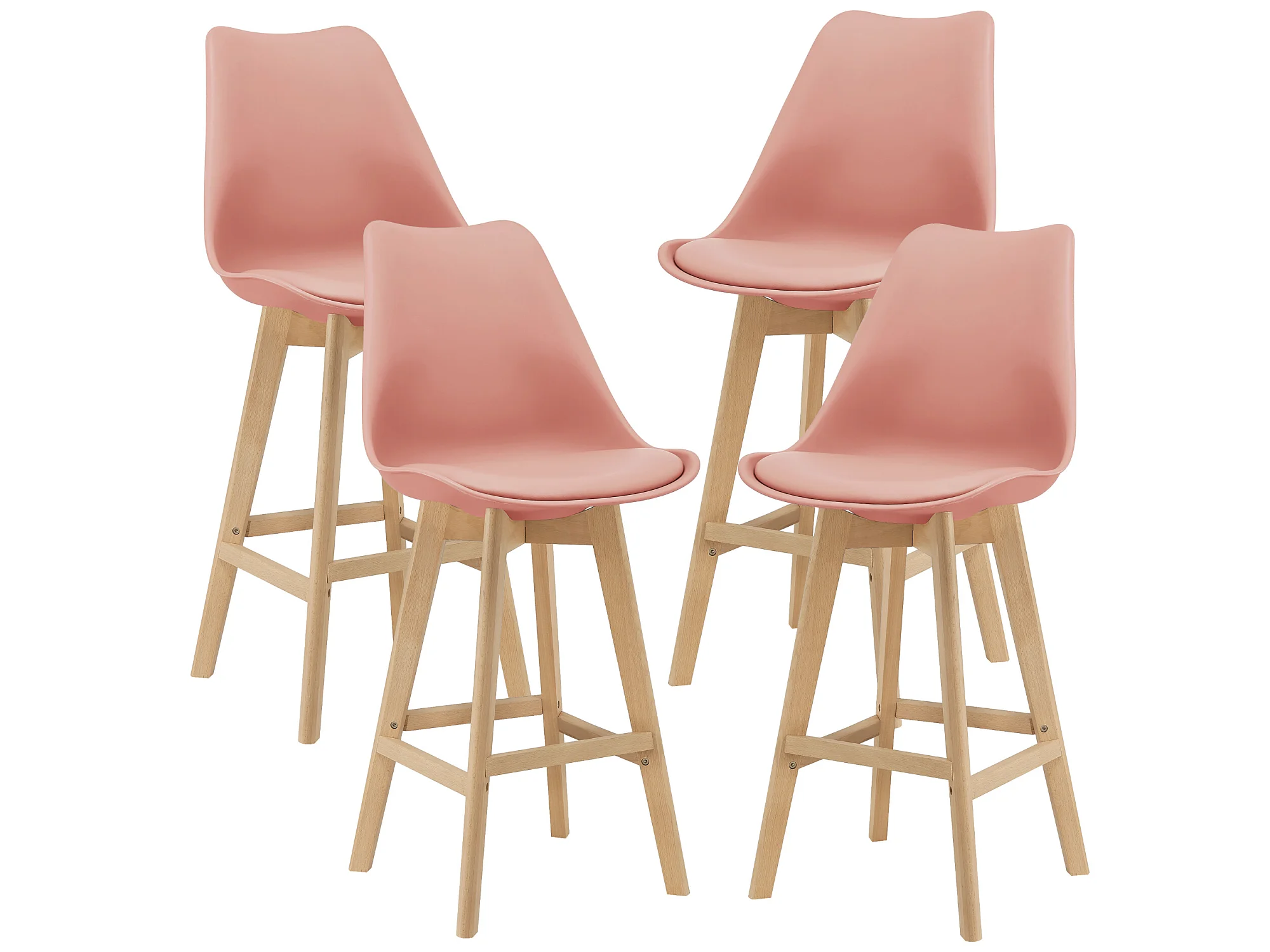 Lot de 4 Tabourets de Bar Lublin Plastique Simili Hêtre 105 x 48 x 58 cm Rose [en.casa]