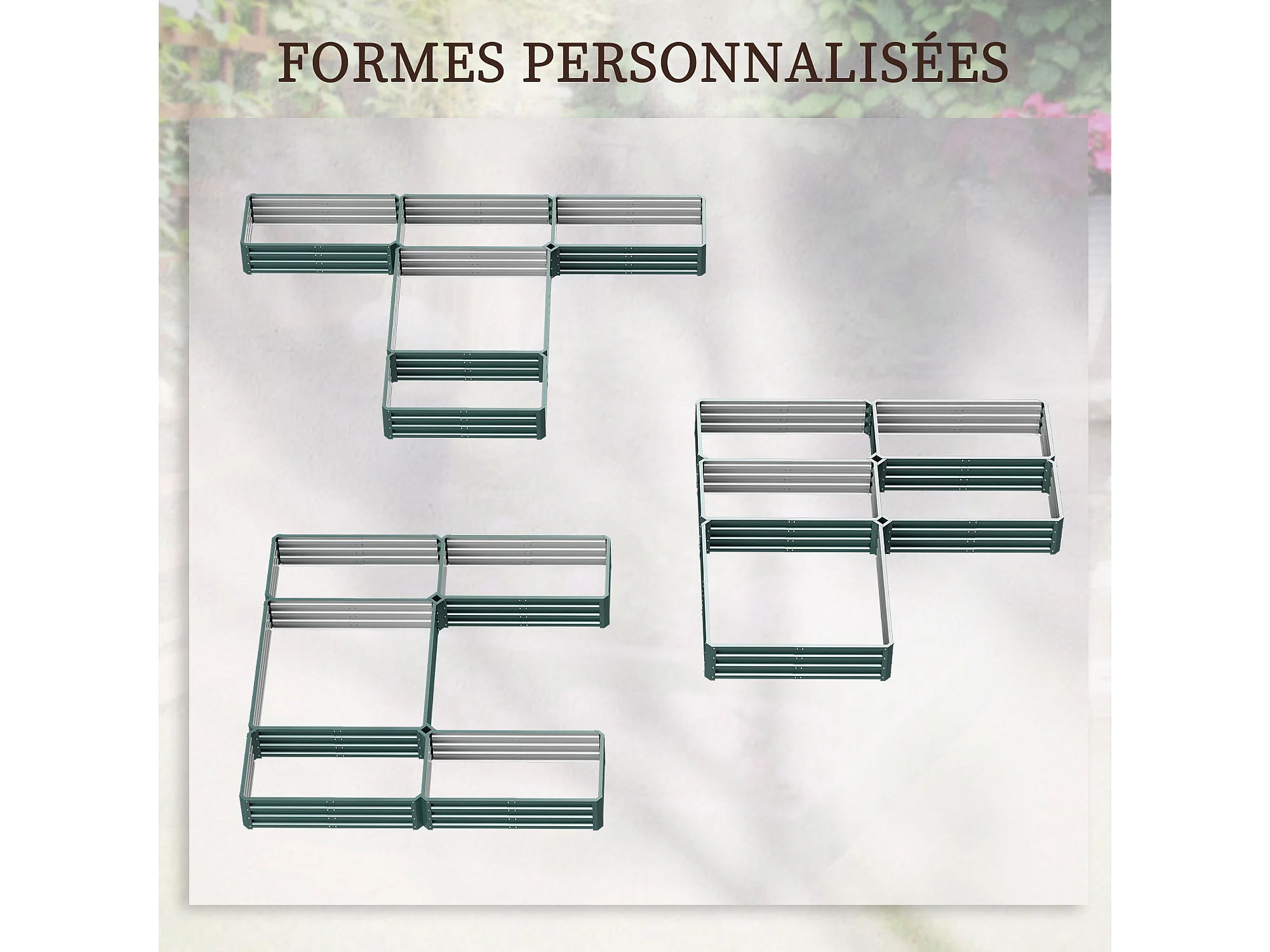 Lot de 5 carrés potager de jardin - forme personnalisable - tôle d'acier ondulée vert