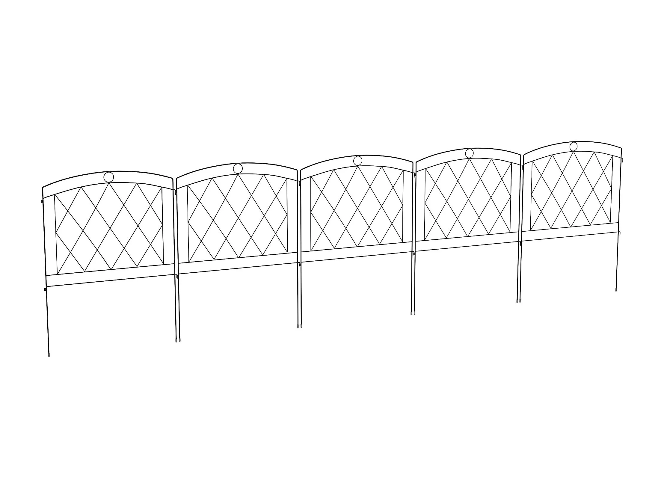 Lot de 5 clôtures de jardin décoratives en métal avec ornements - dim. totales 410L x 90H cm - noir