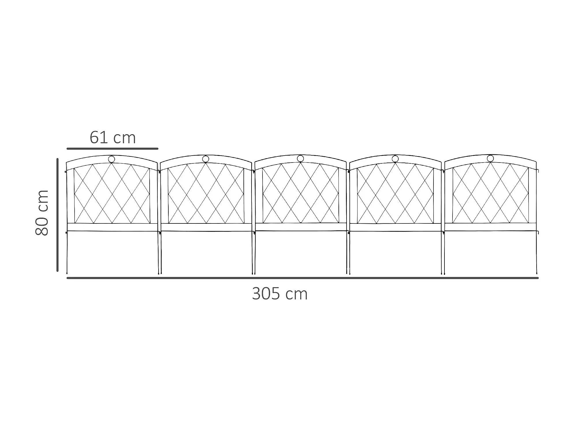 Lot de 5 clôtures de jardin décoratives en métal avec ornements - dim. totales 305L x 62H cm - noir