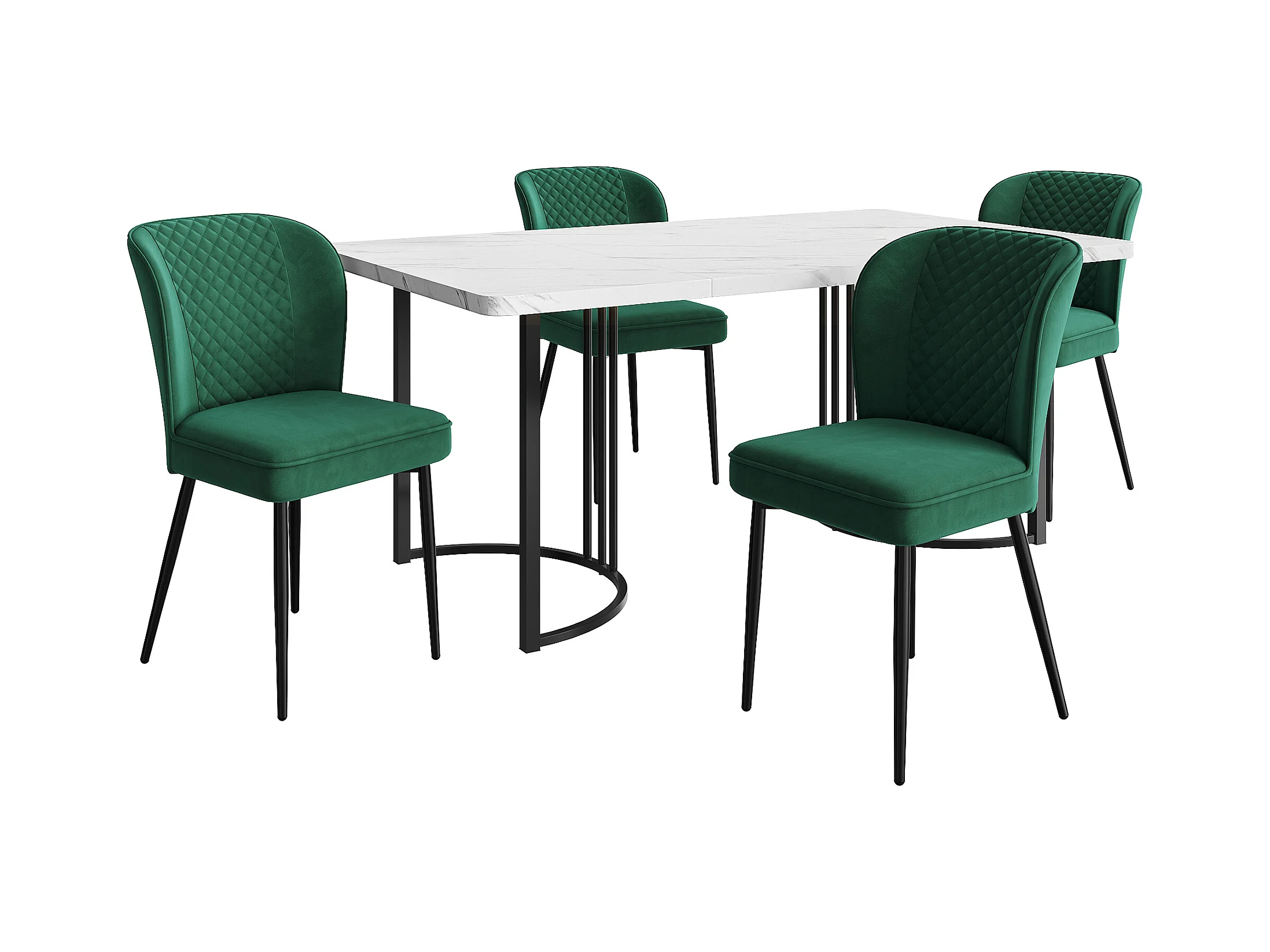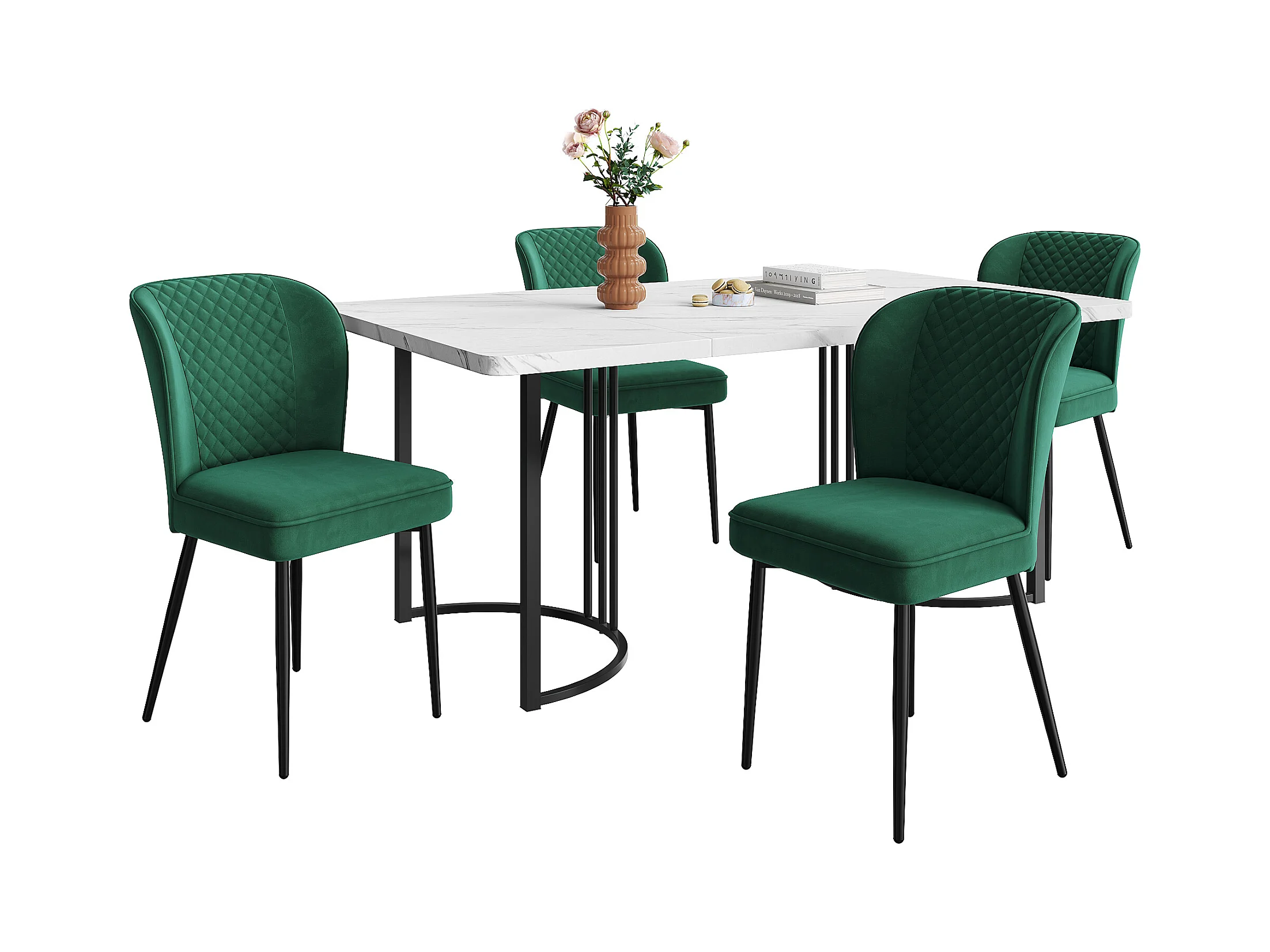 Lot de 5 table à manger et chaises - 140 x 80 x 75 cm - table à pieds noir - velours + MDF - vert foncé