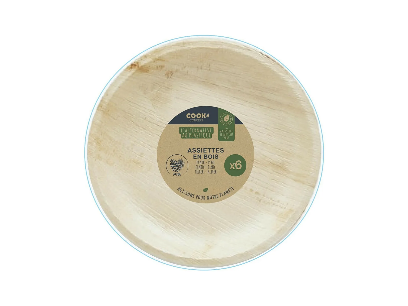 Lot de 6 Assiettes Rondes en Pin "Ecolo" 25cm Naturel