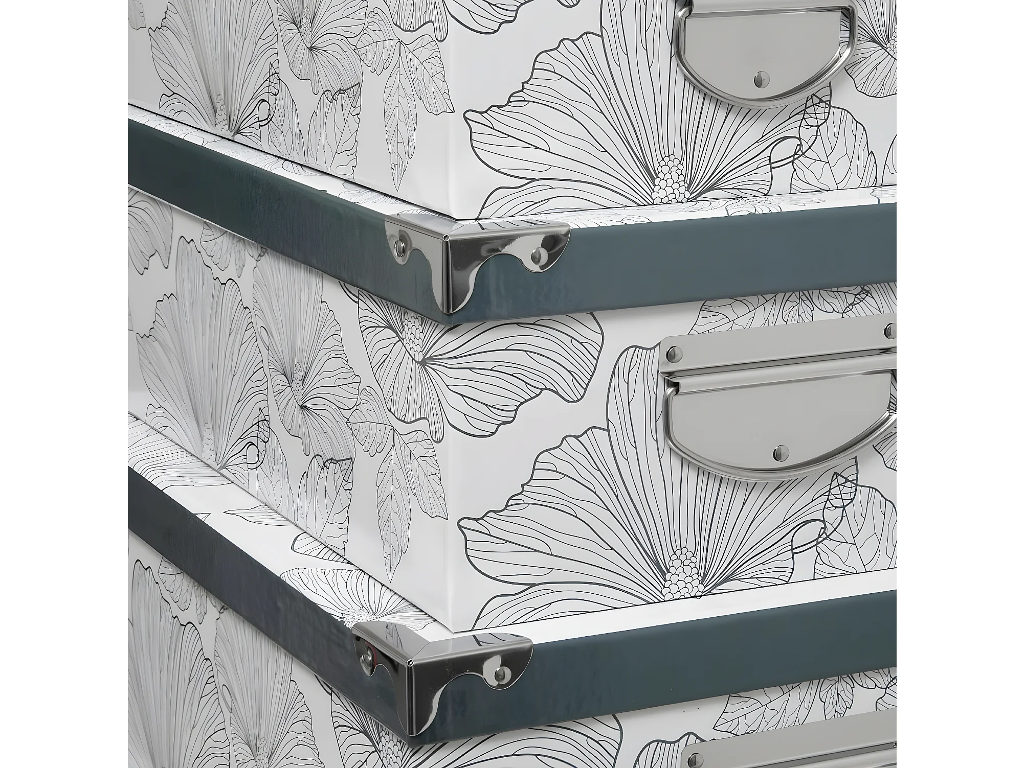 Lot de 6 Boîtes de rangement avec poignées et coins en Métal collection Black Flora