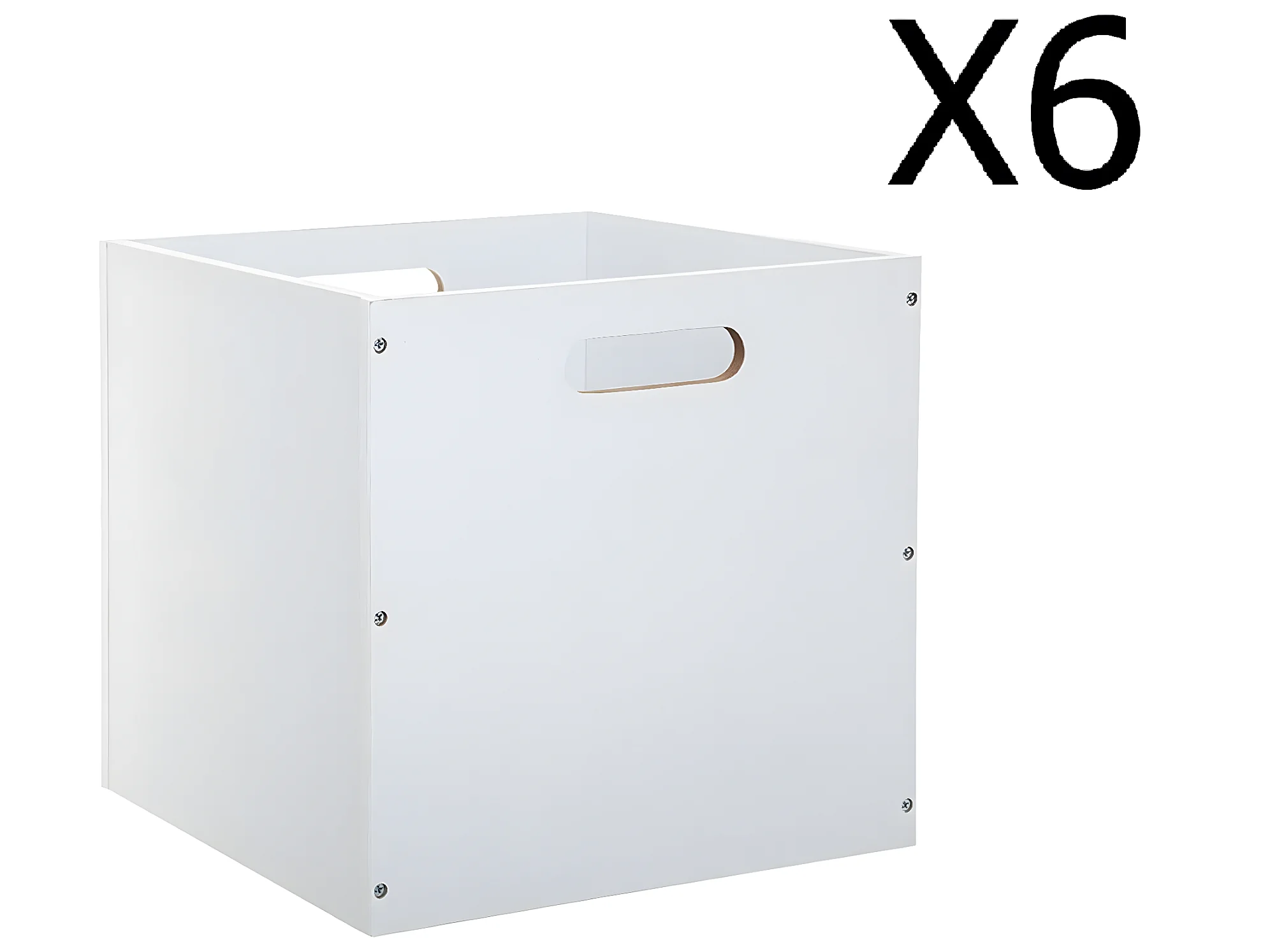 Lot de 6 Boites de rangement en bois Blanc - L. 30.5 x P. 30.5 x H. 30.5 cm