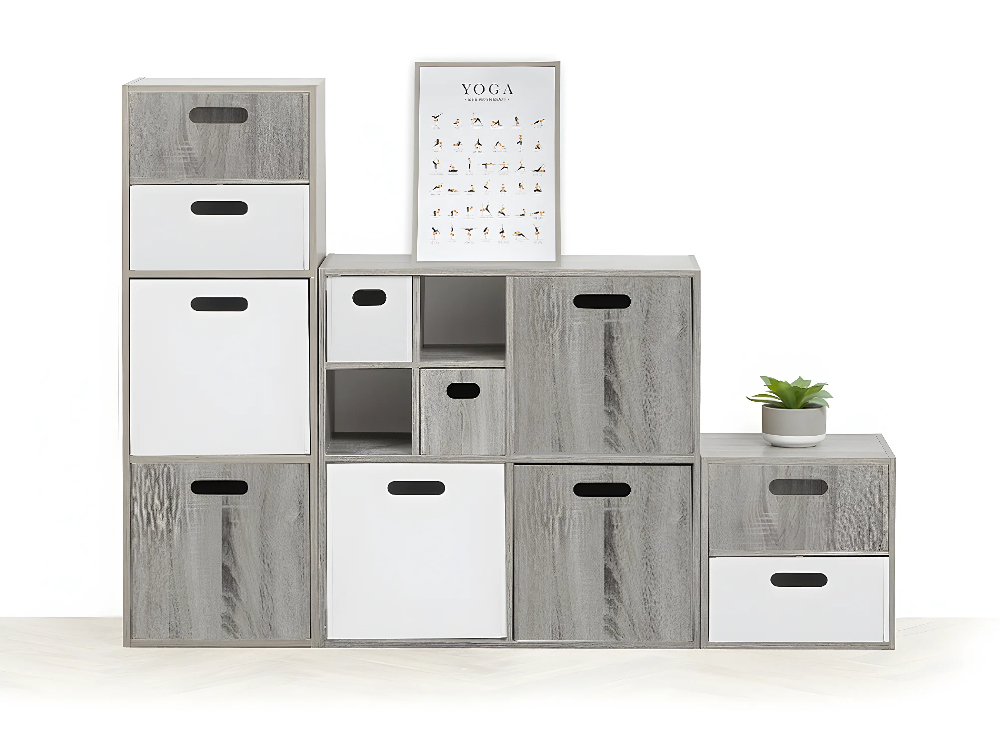 Lot de 6 boites de rangement, paniers de rangement en bois coloris gris