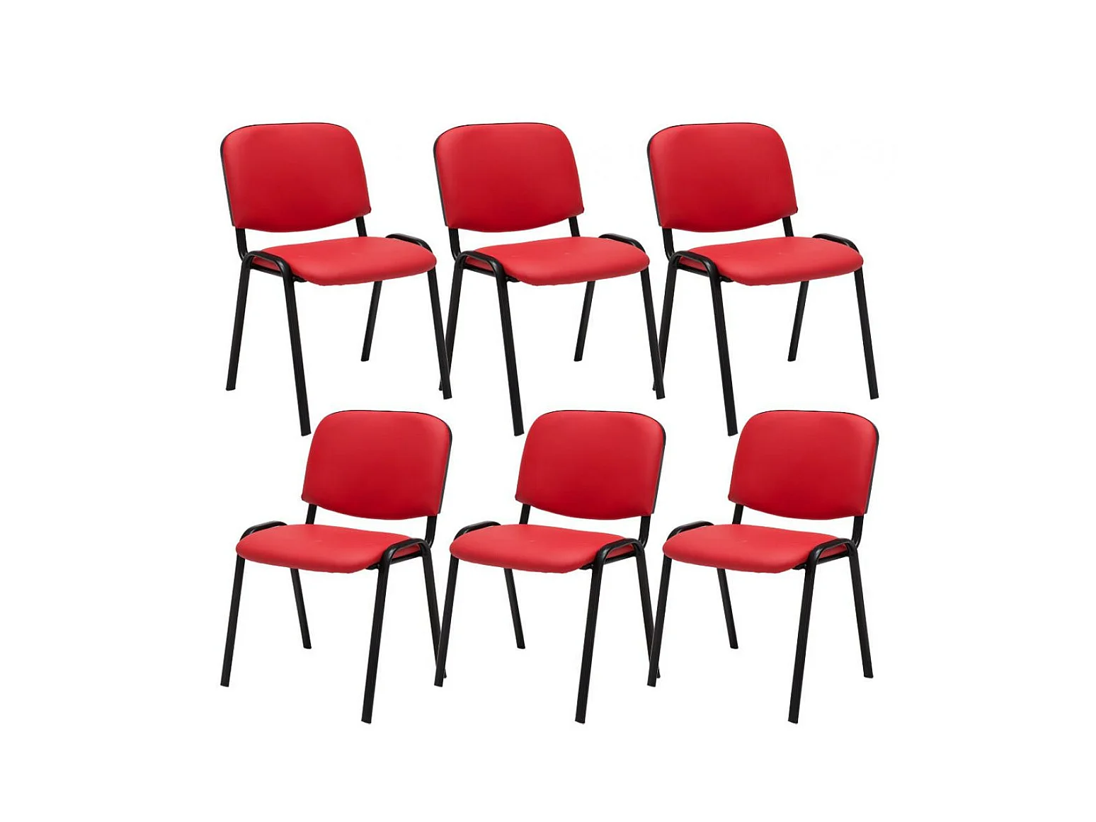Lot de 6 Chaise de conférence - Similicuir & Métal noir mat - Rouge - Ken