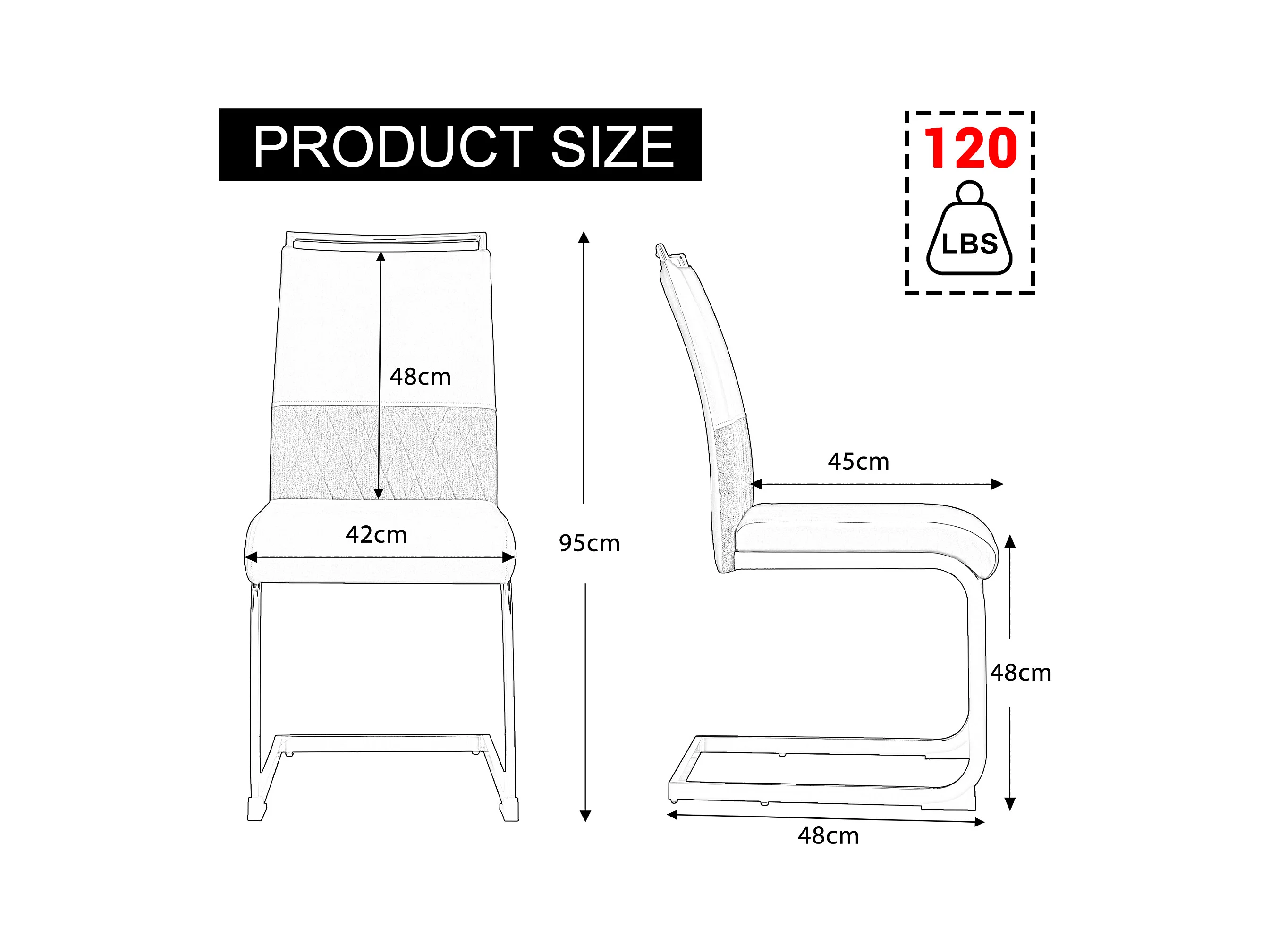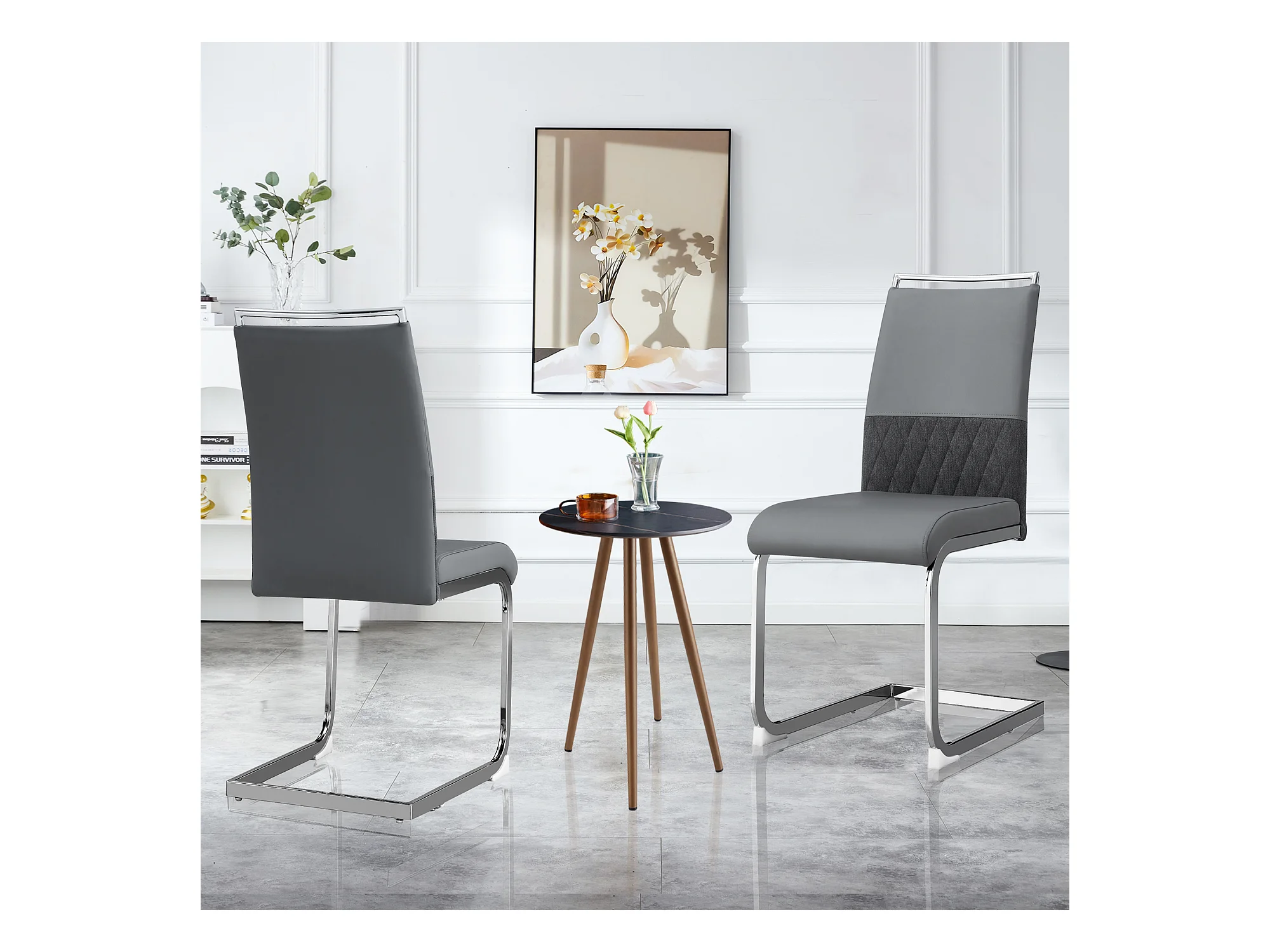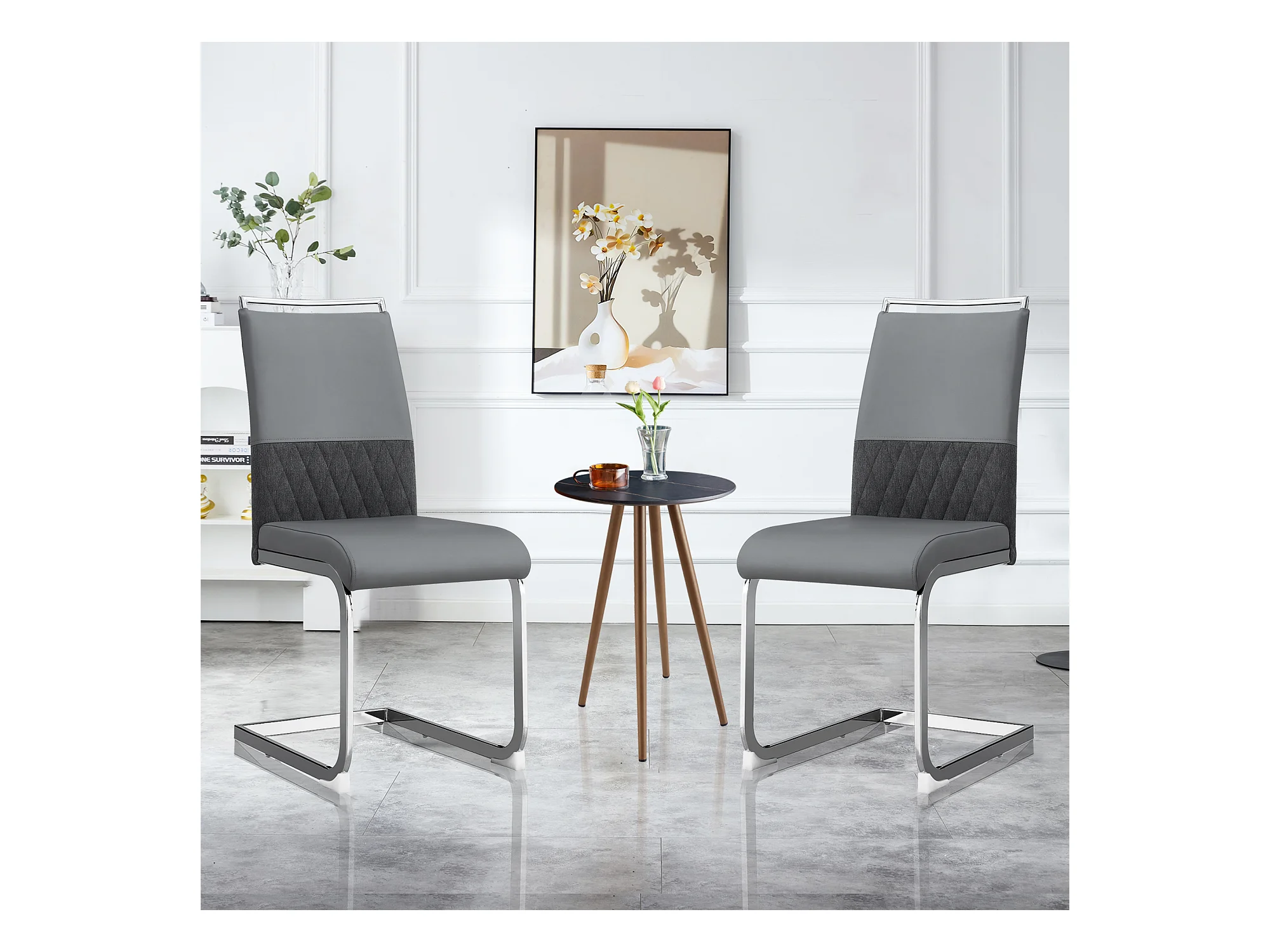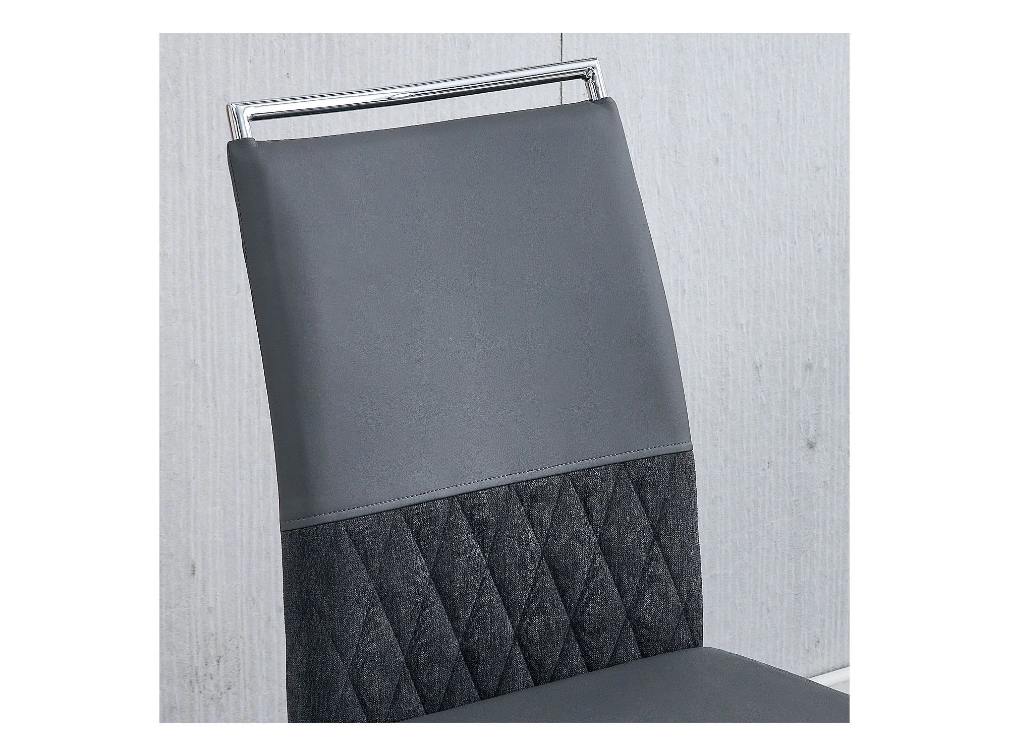 Lot de 6 chaises de salle à manger - Similicuir gris et lin - Dossier rembourré - Pieds argentés