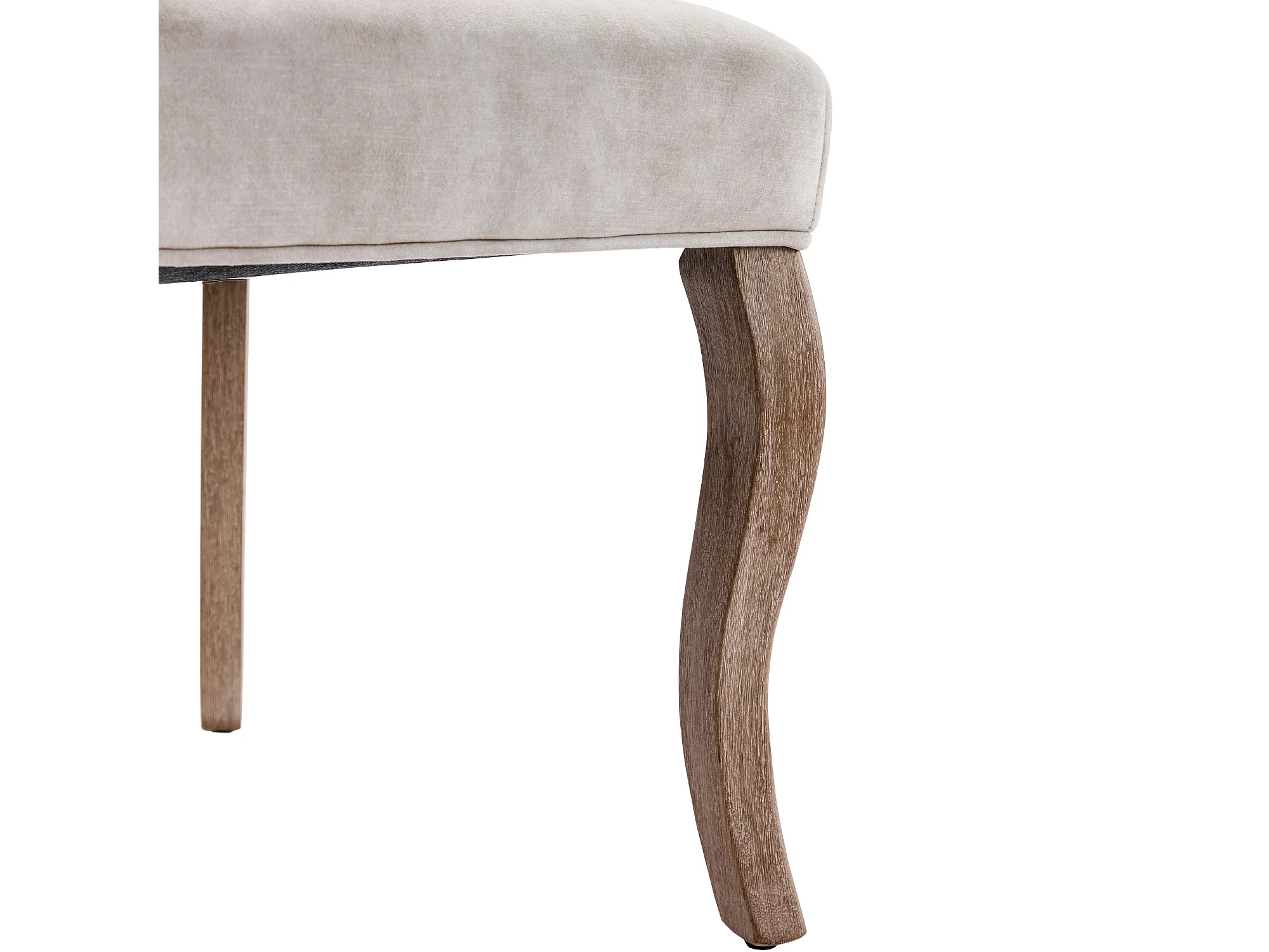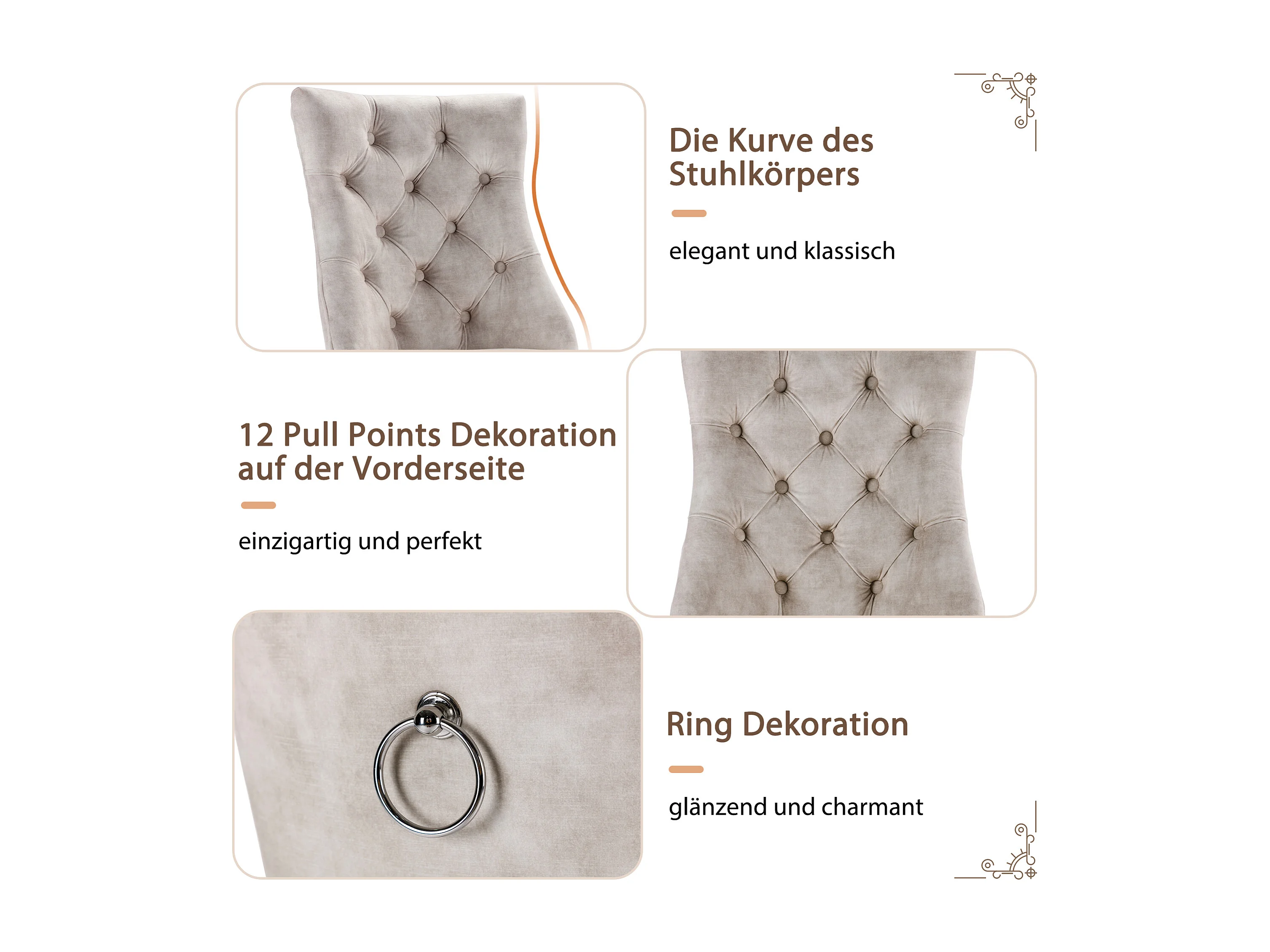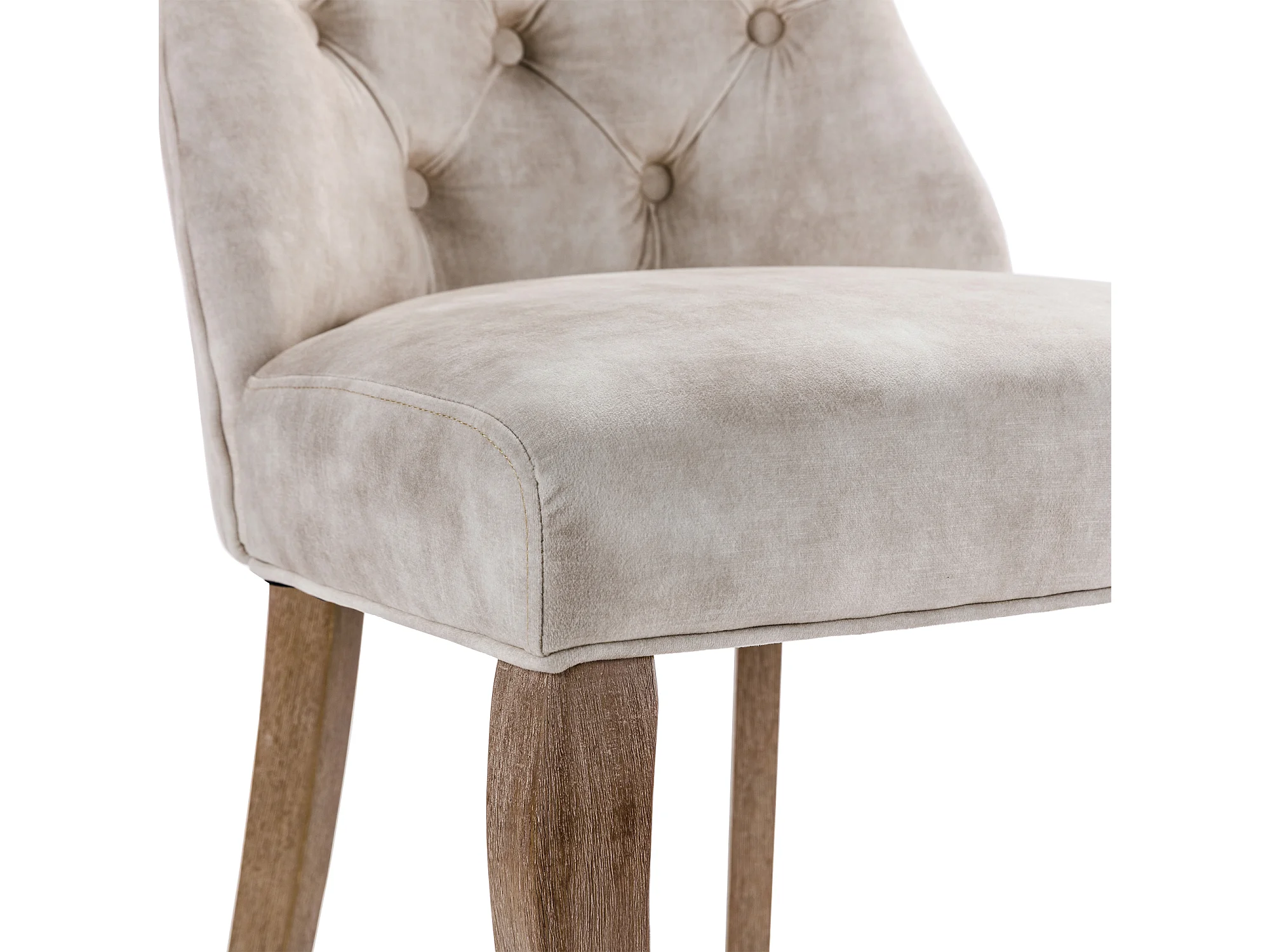 Lot de 6 chaises de salle à manger - velours beige clair - dossier rembourré - décoration boutons - pieds en bois