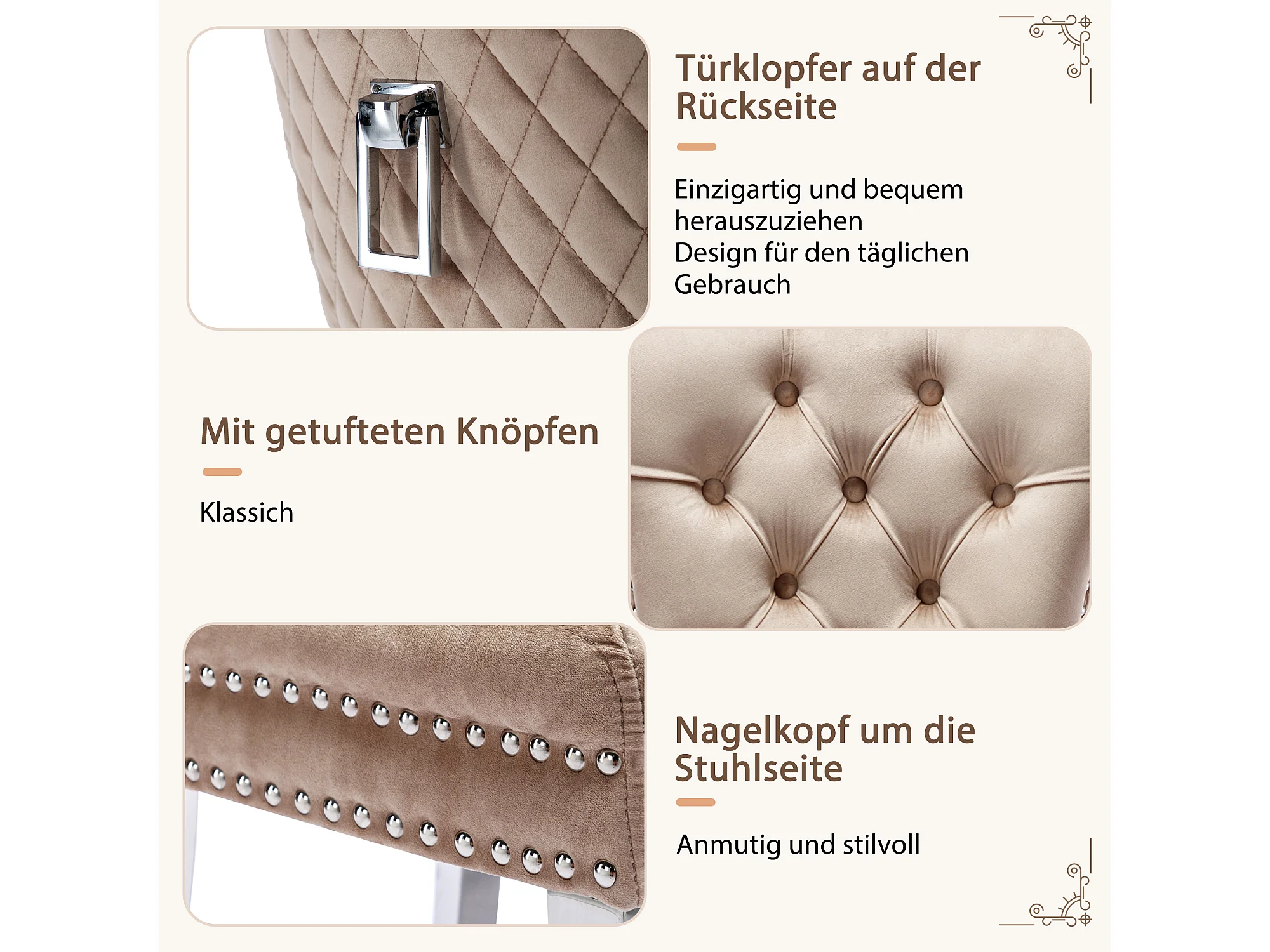 Lot de 6 Chaise de salle à manger rembourrée avec garniture en tête de clou et pieds en métal - Beige