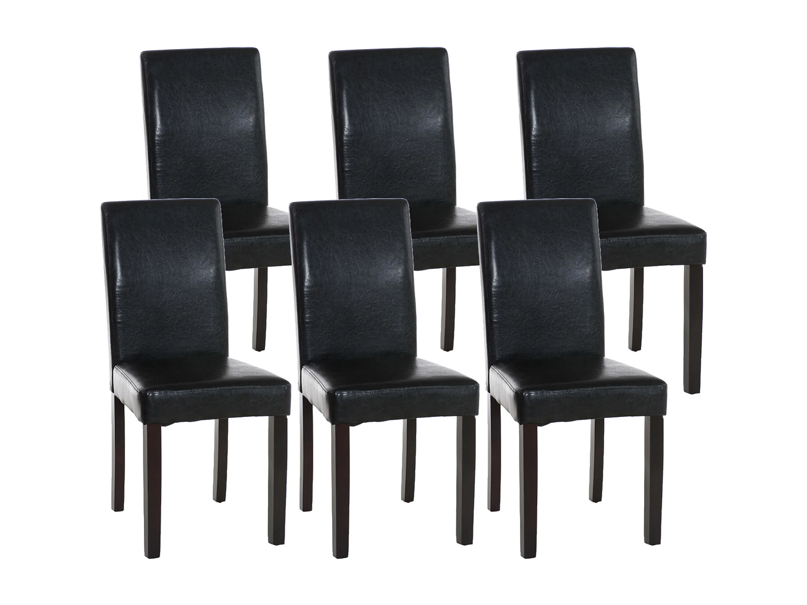 Lot de 6 chaise salle à manger - Similicuir & Marron foncé - Noir - Ina
