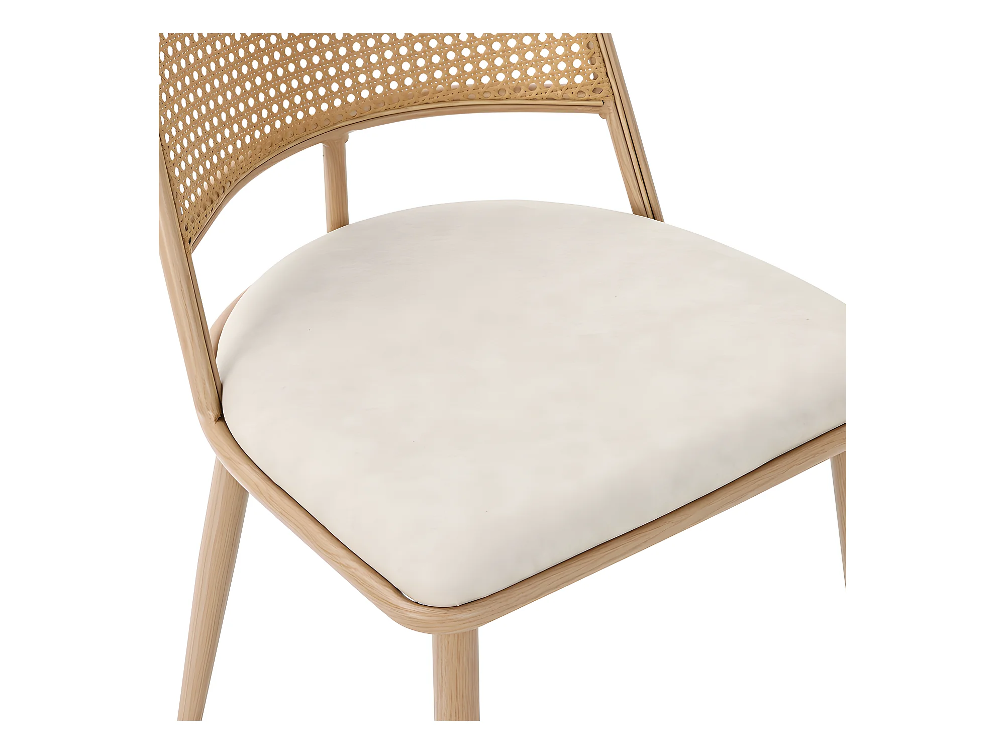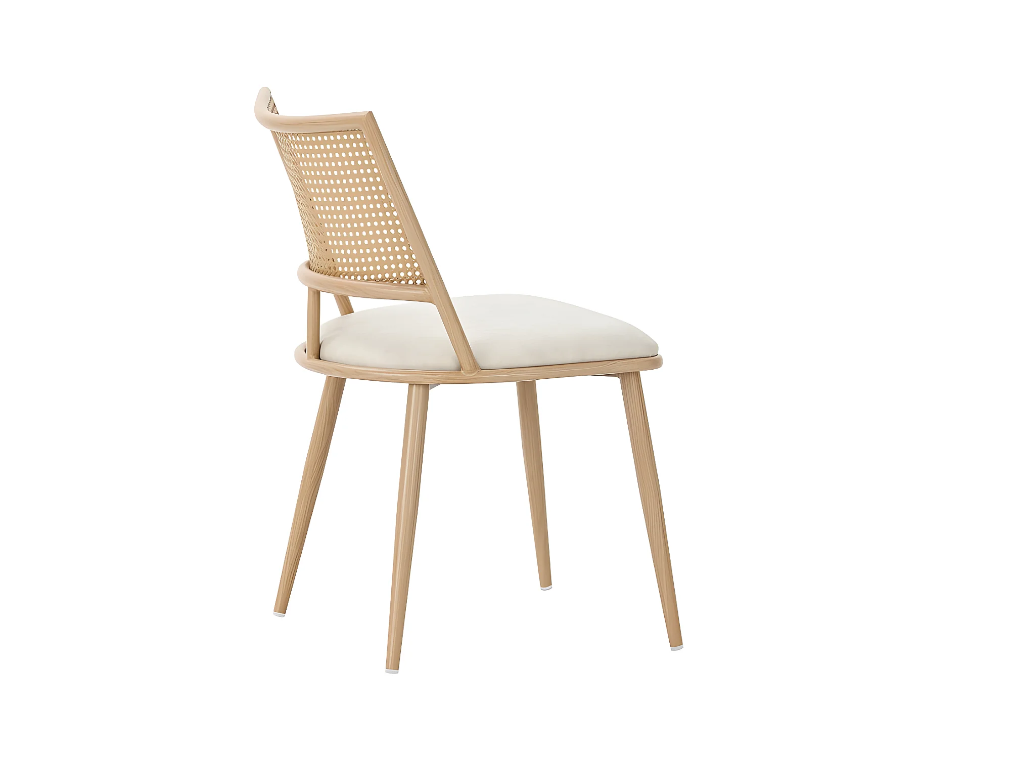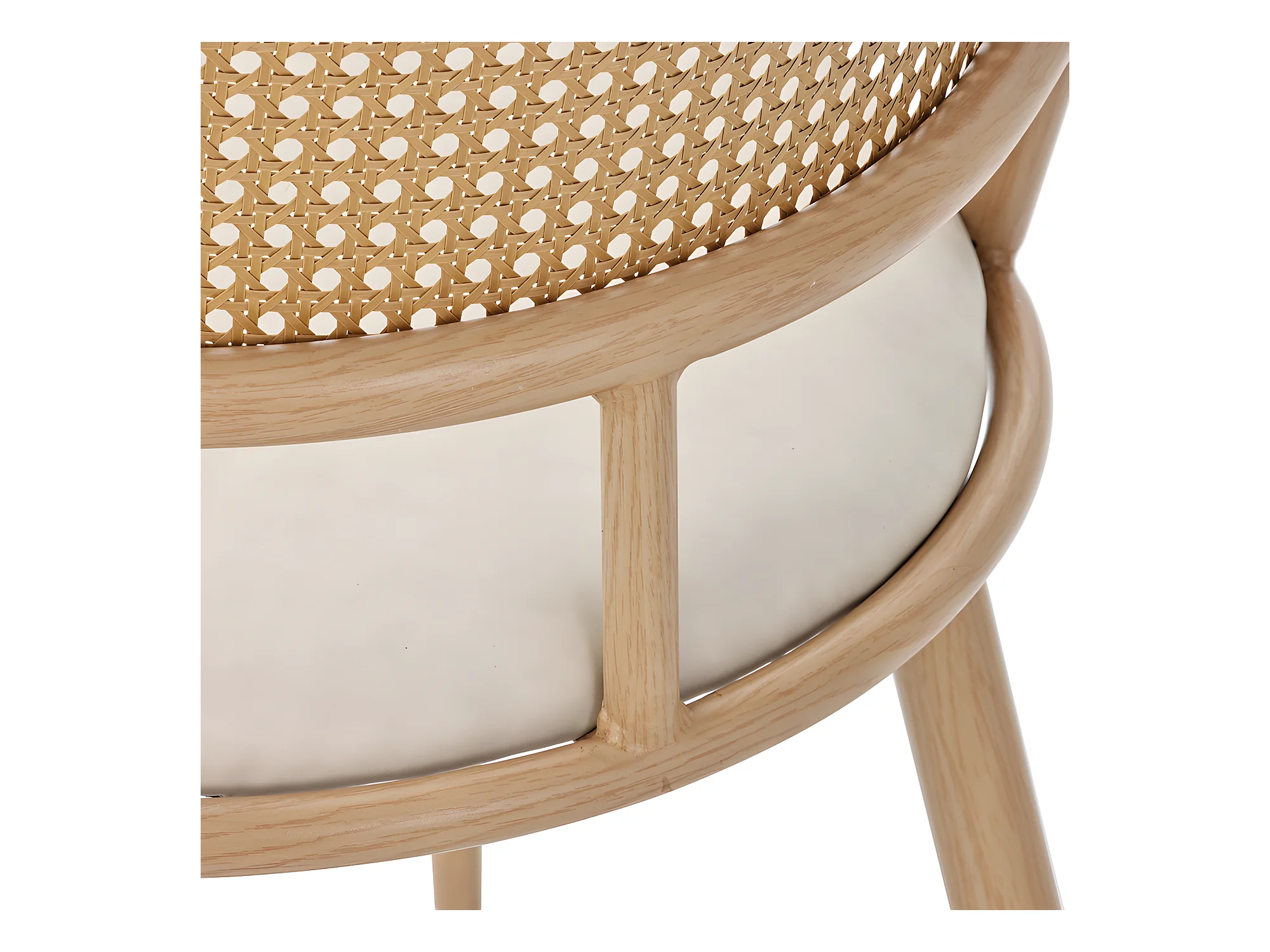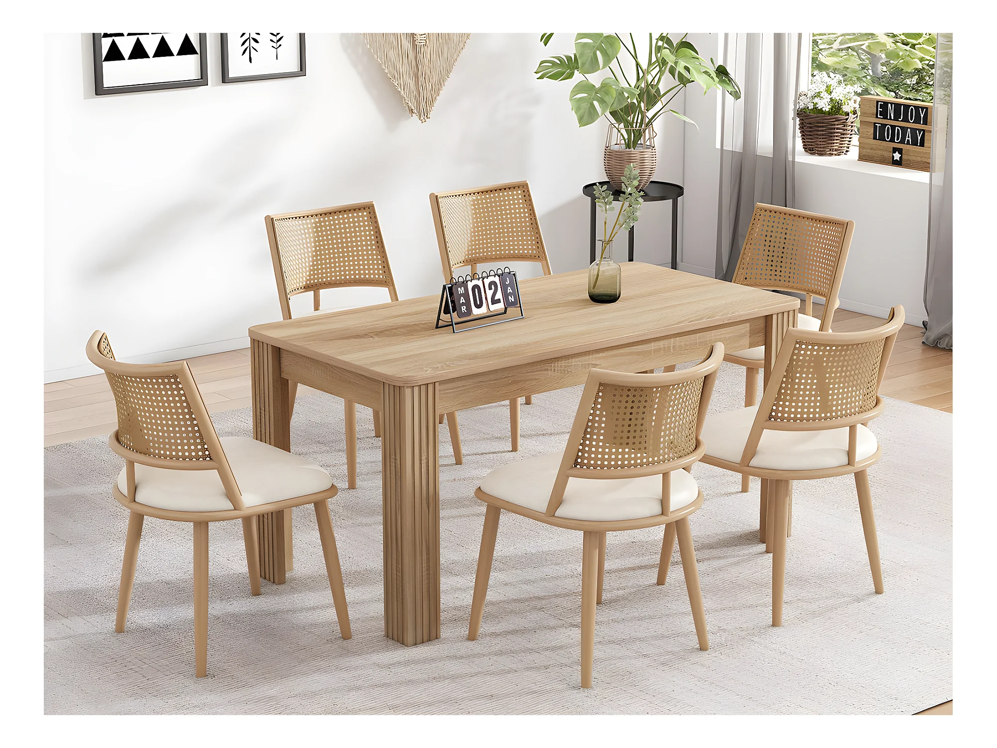 Lot de 6 Chaises de salle à manger avec coussin en similicuir et dossier en rotin PE - Naturel