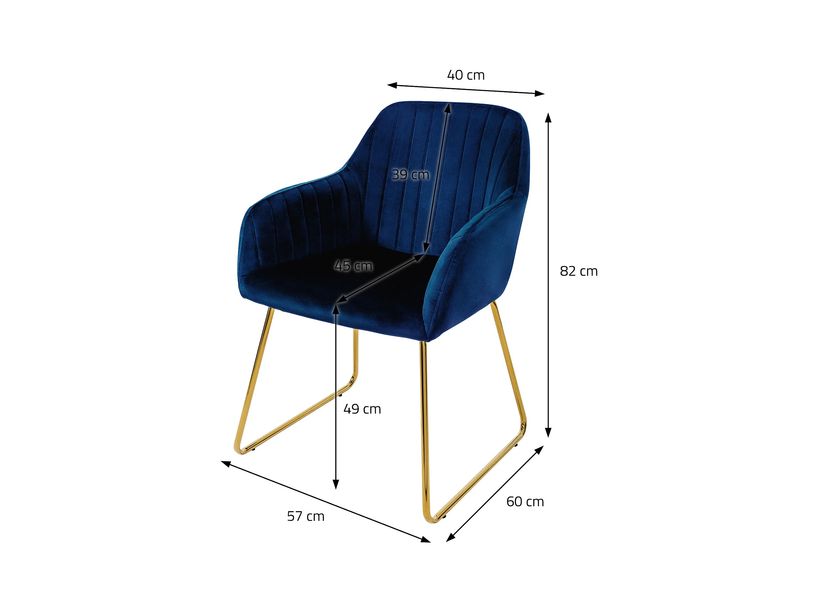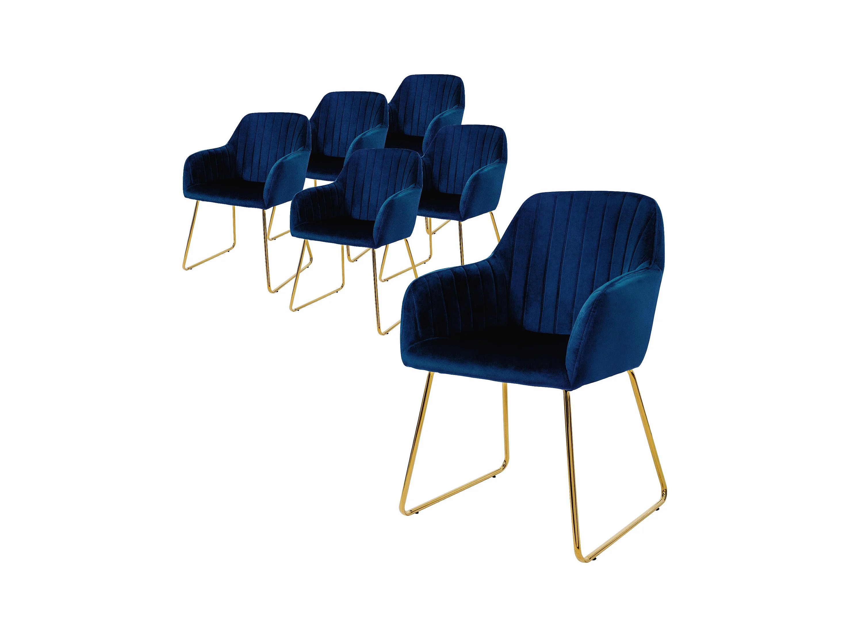 Lot de 6 chaises de salle à manger bleu assise en velours pieds dorés en métal