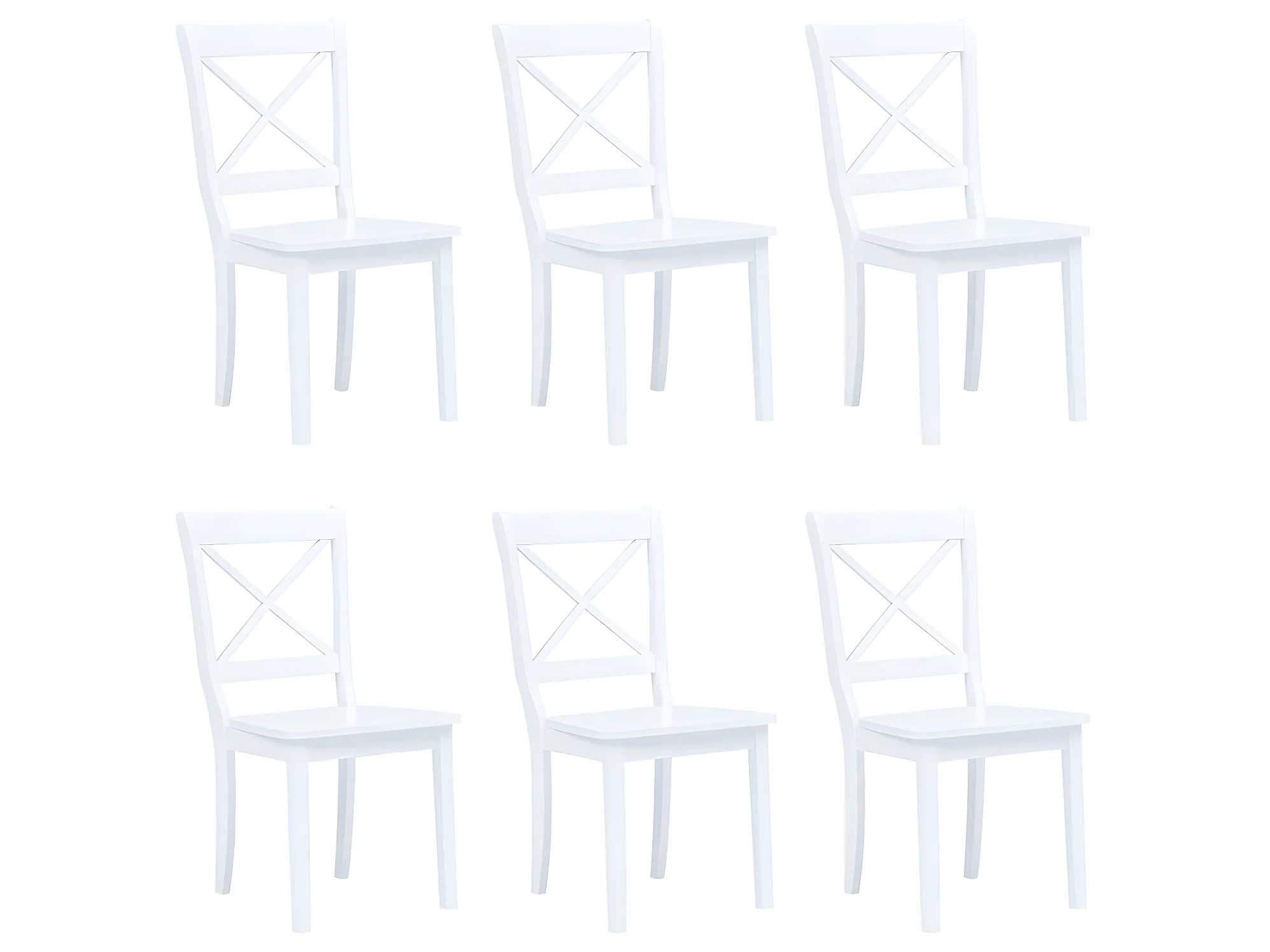 Lot de 6 chaises de salle à manger cuisine design classique blanc bois d'hévéa massif CDS022151