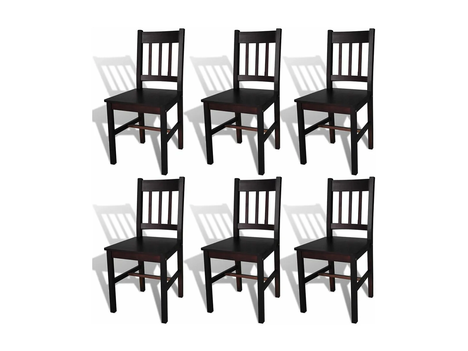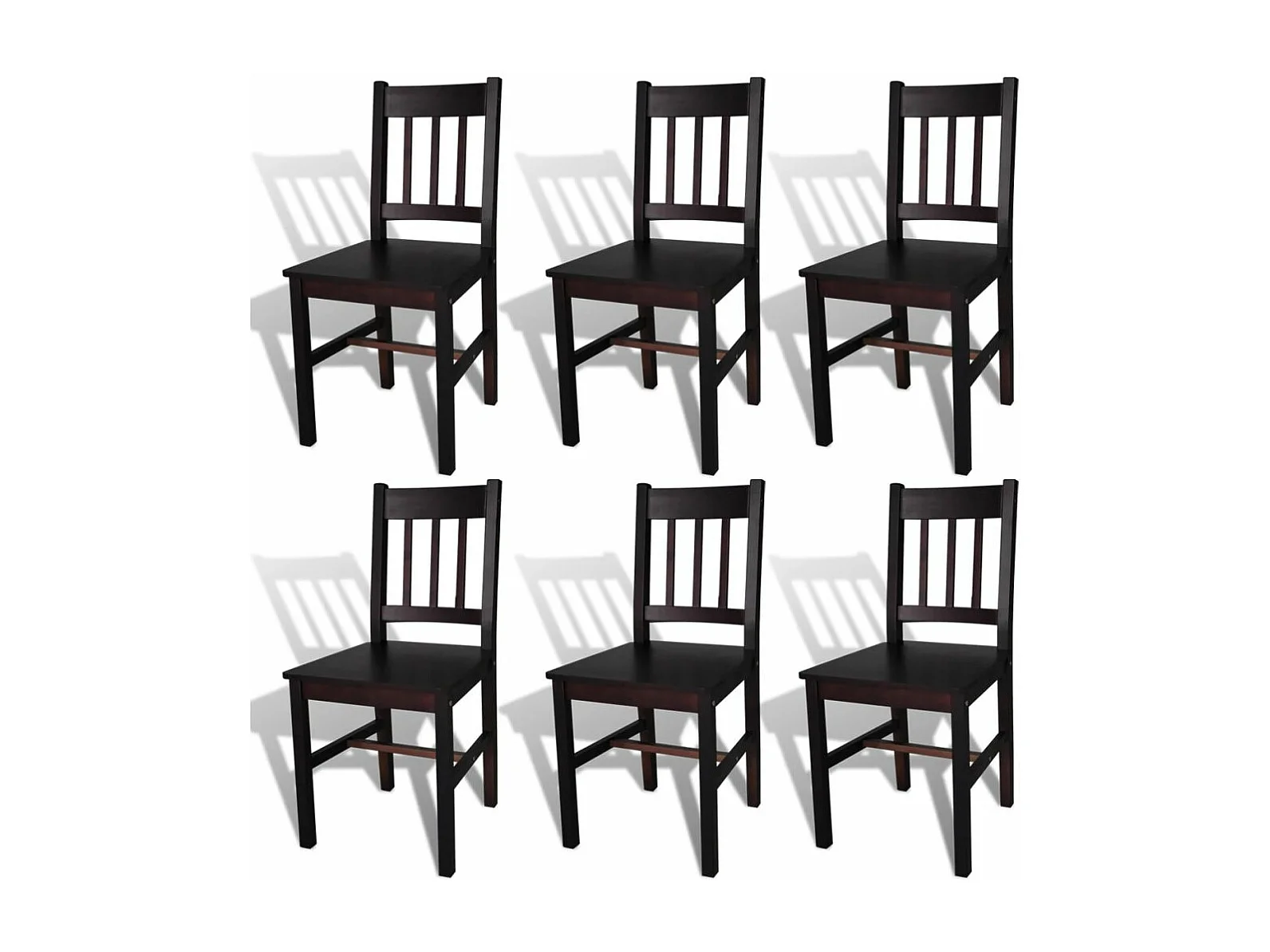 Lot de 6 chaises de salle à manger cuisine design classique pinède marron foncé CDS022570