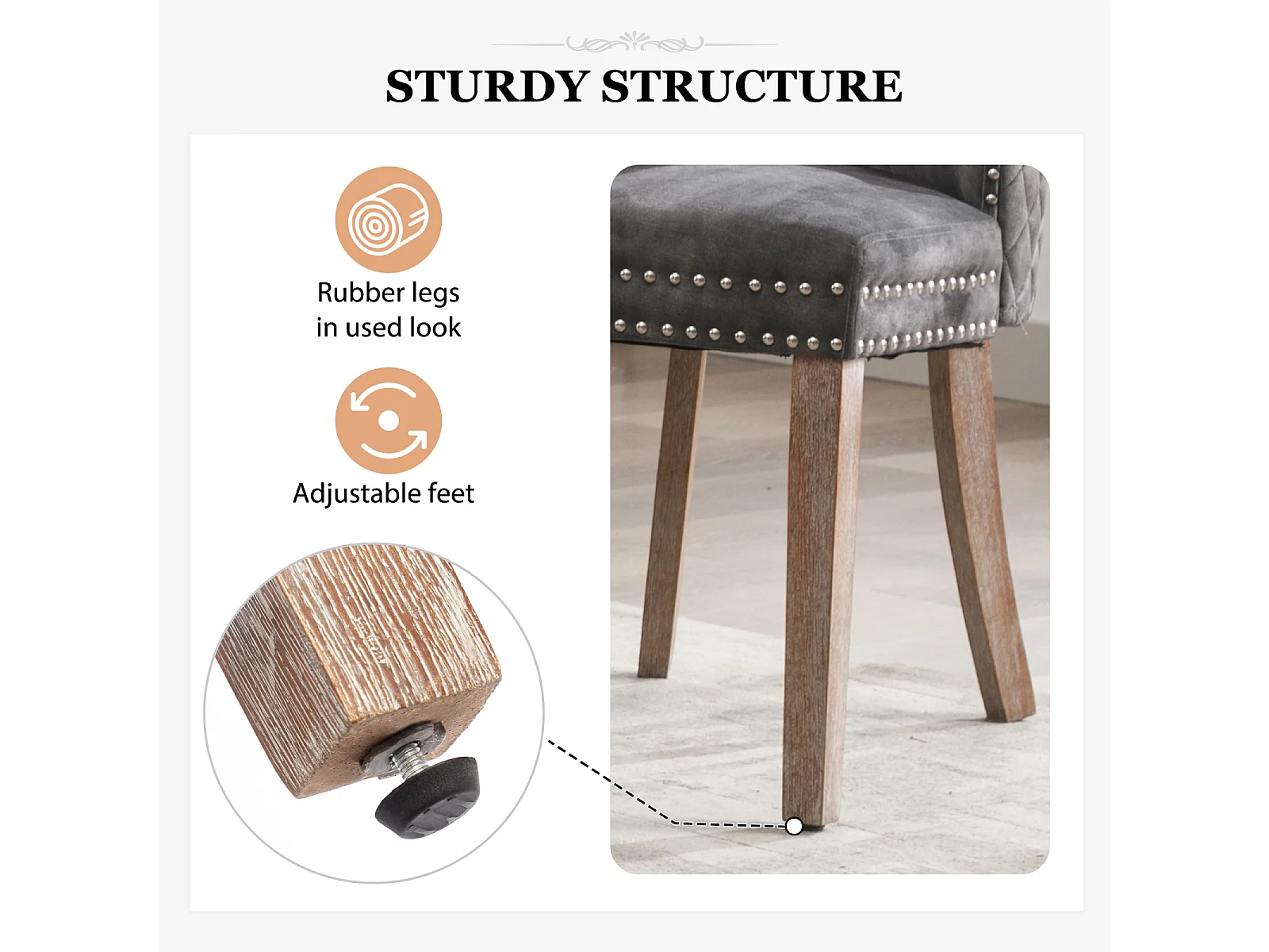 Lot de 6 Chaises de salle à manger, cuisine et salon chaise rembourrée pieds en bois massif - 53.5x64x95cm gris