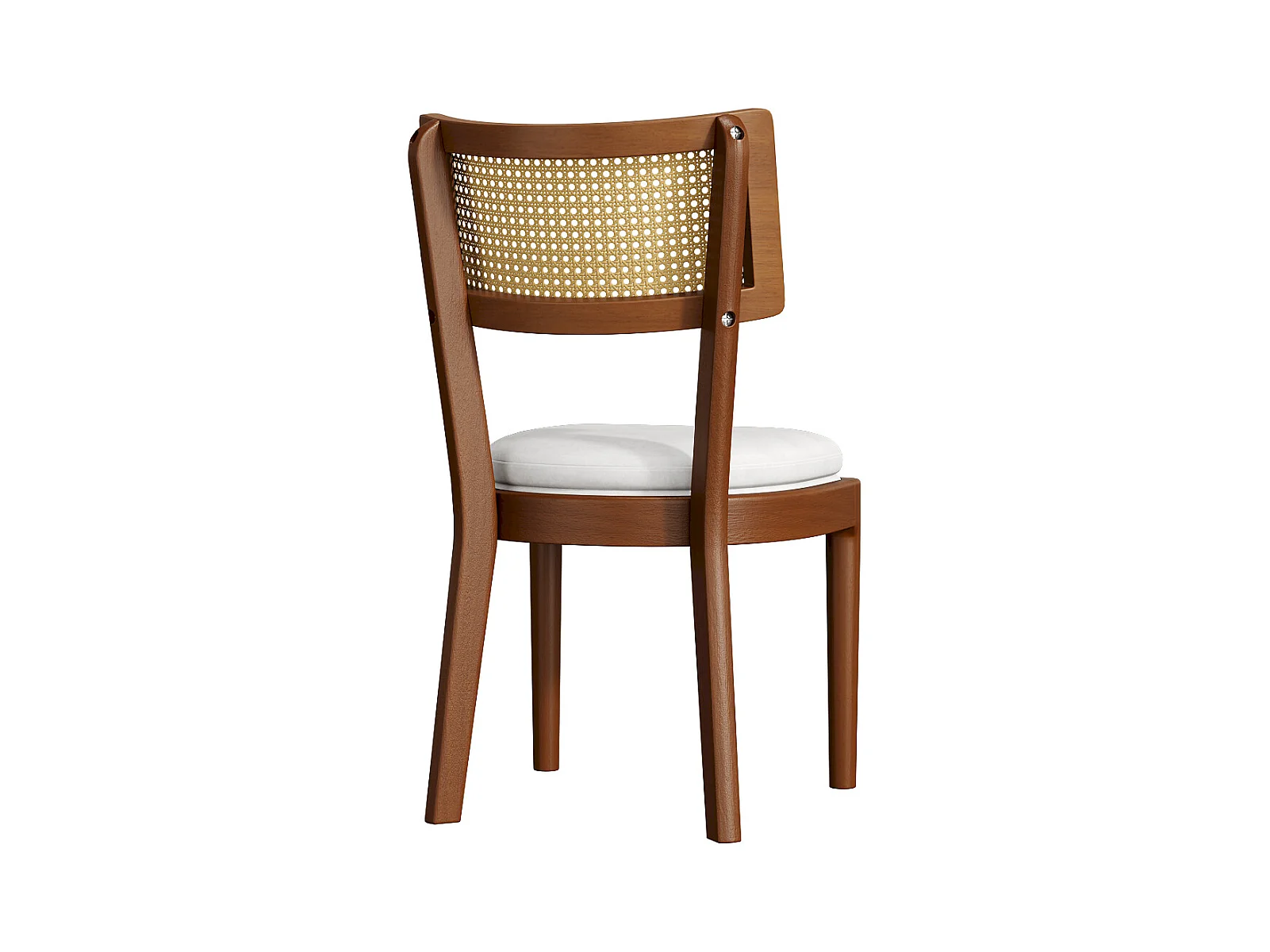Lot de 6 chaises de salle à manger - Dossier en rotin - Assise en velours - Bois massif - Marron