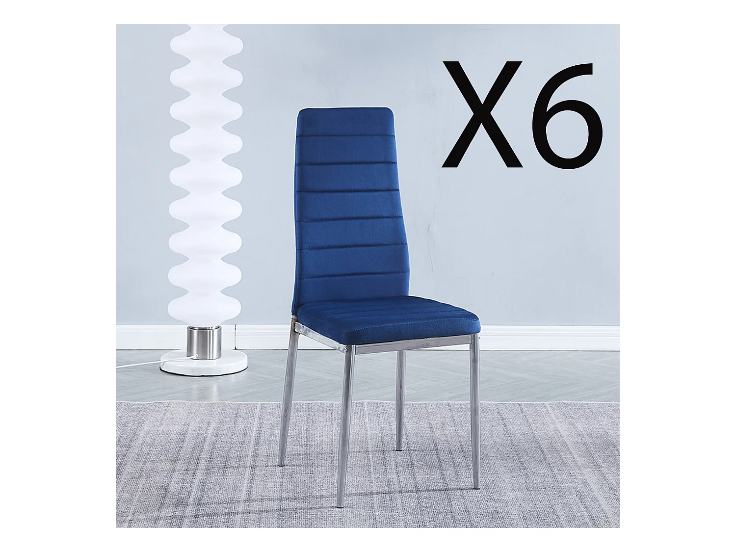 Lot de 6 chaises de salle à manger en velours coloris bleu avec pieds chromés - Longueur 41 x profondeur 52 x hauteur 98 cm