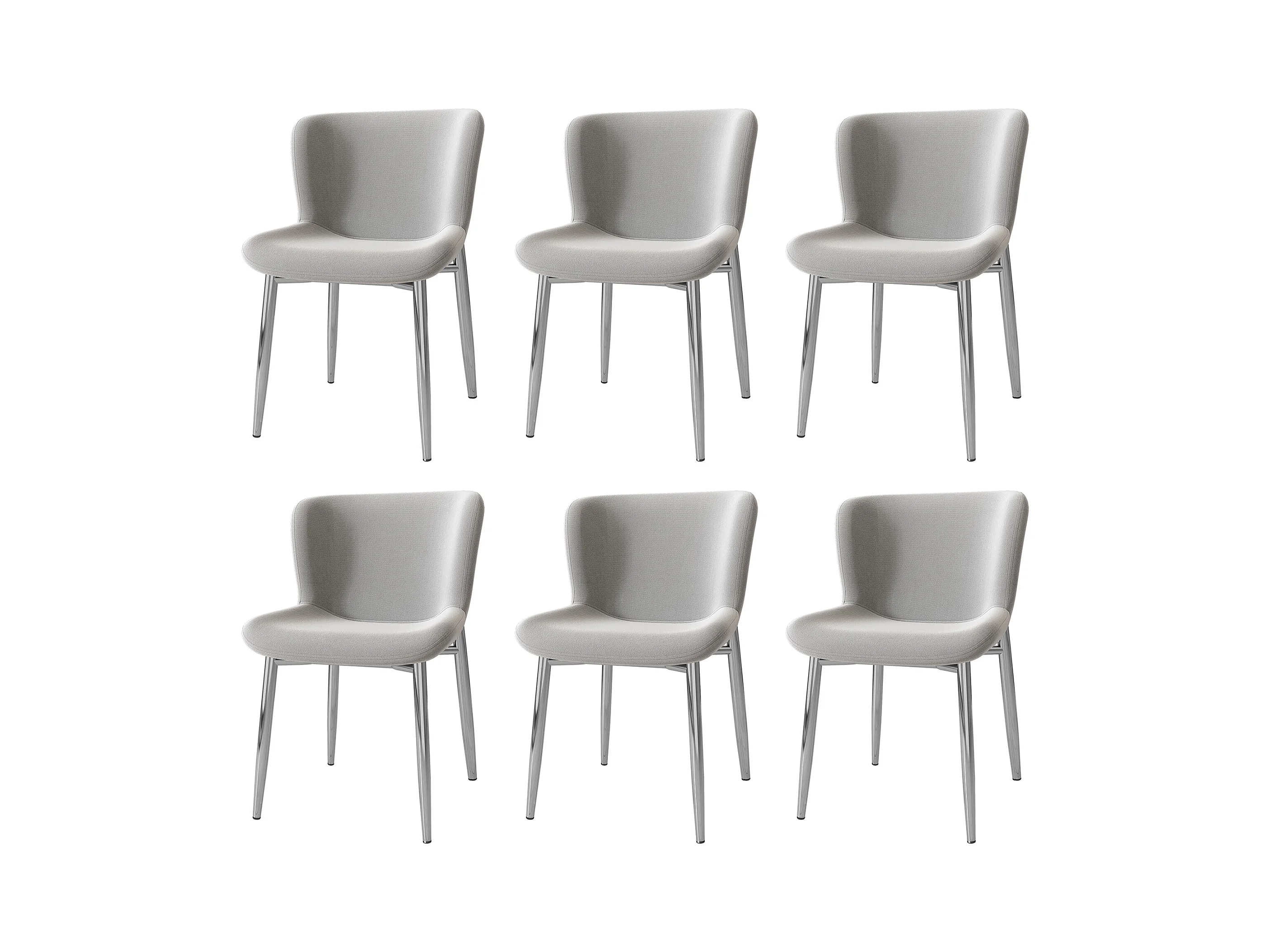 Lot de 6 chaises de salle à manger en velours gris, dossier rembourré et pieds en métal argenté