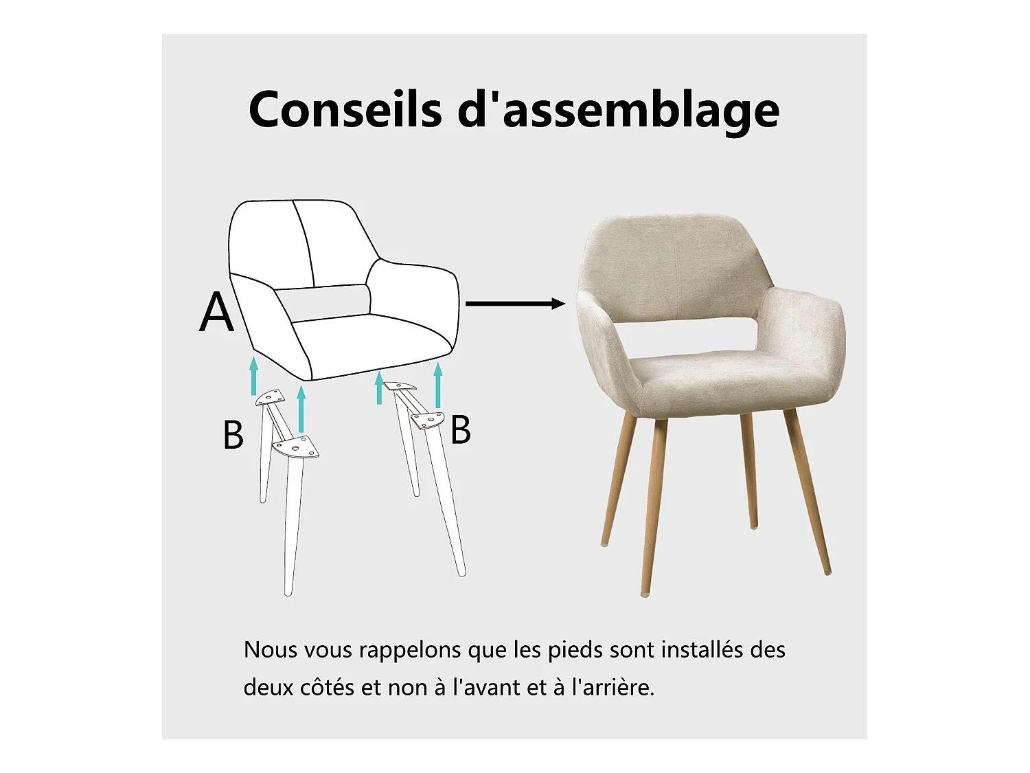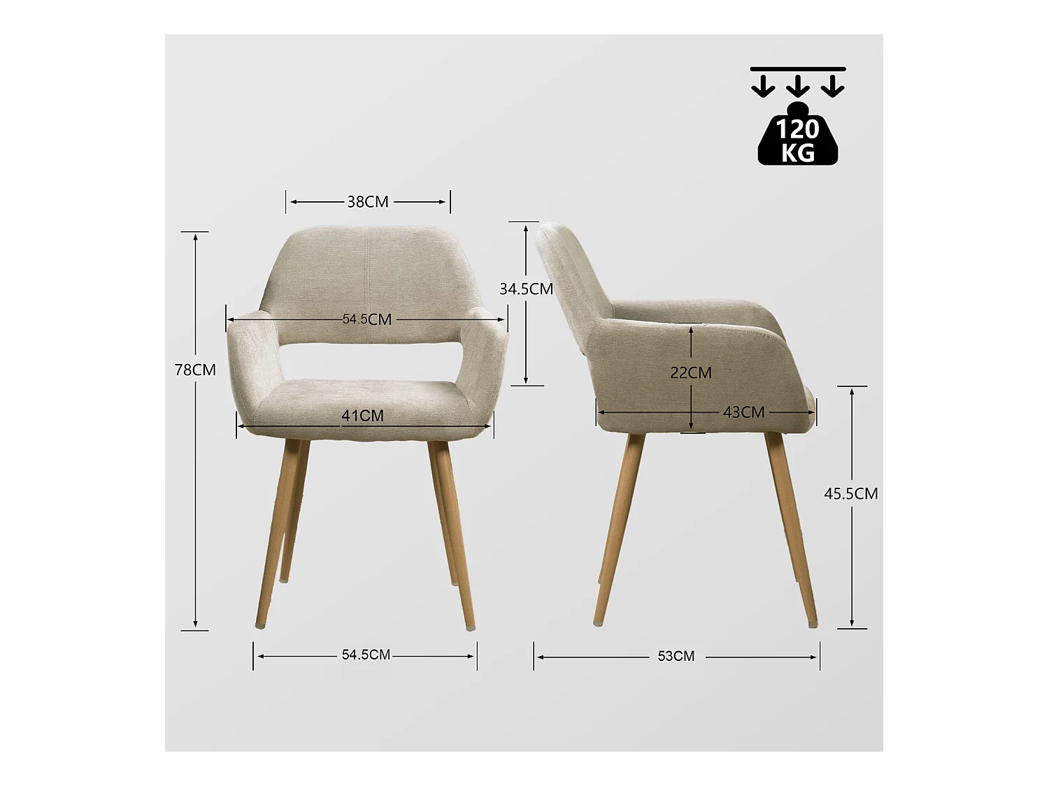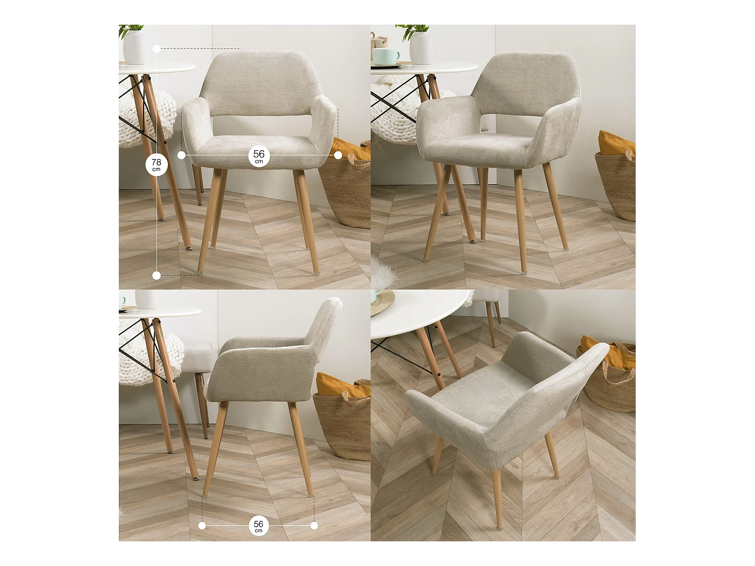 Lot de 6 chaises de salle à manger fauteuils en tissue beige style scandinave,CROMWELL