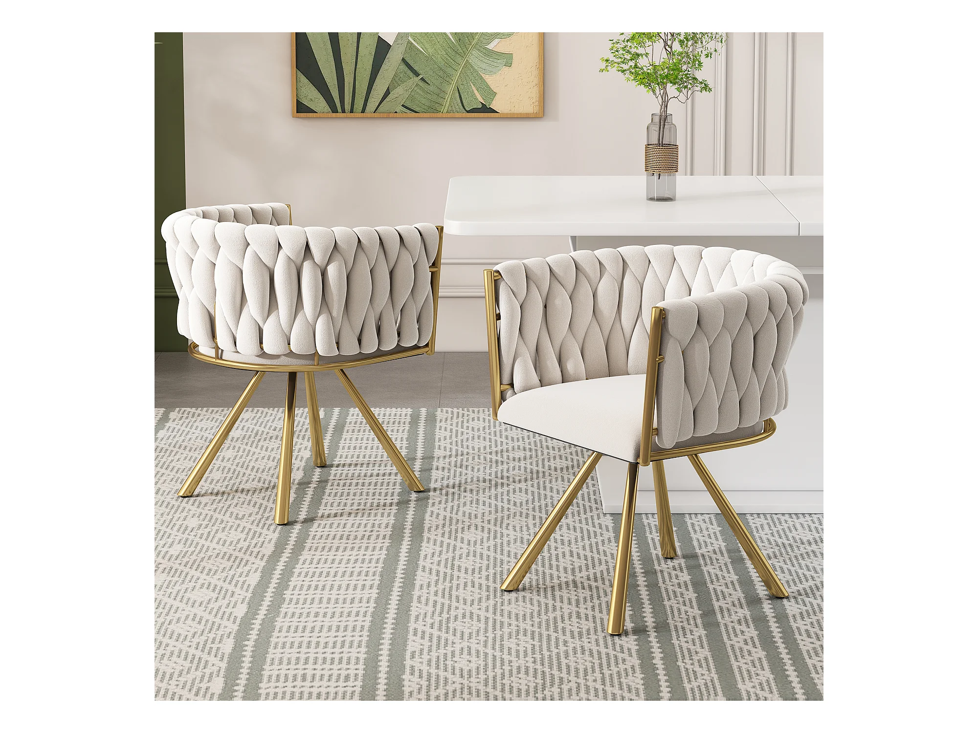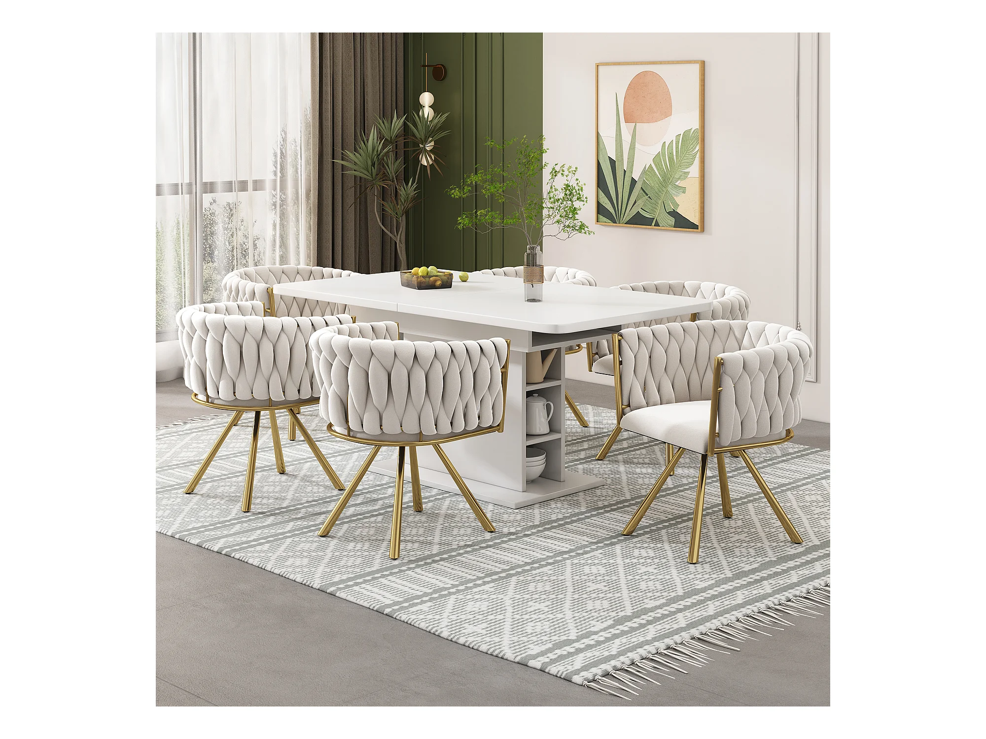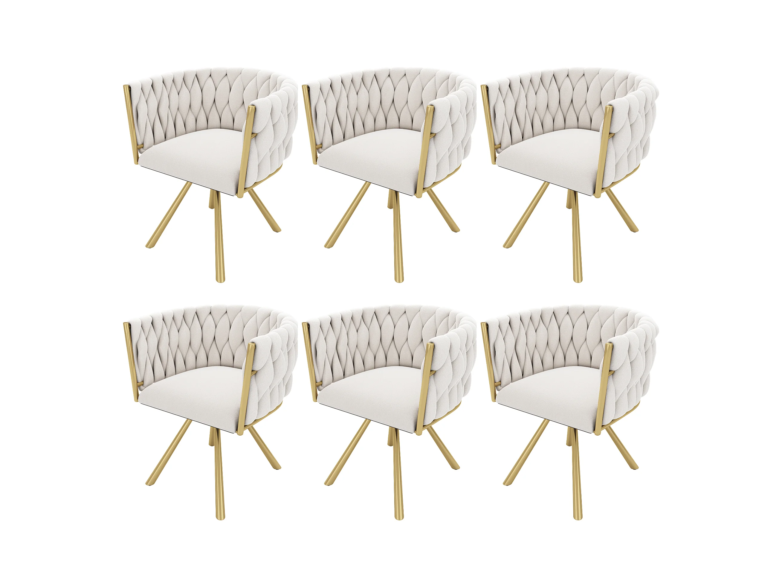 Lot de 6 chaises de salle à manger pivotantes avec accoudoirs - 59 x 54 x 72 cm - Velours - Beige + or