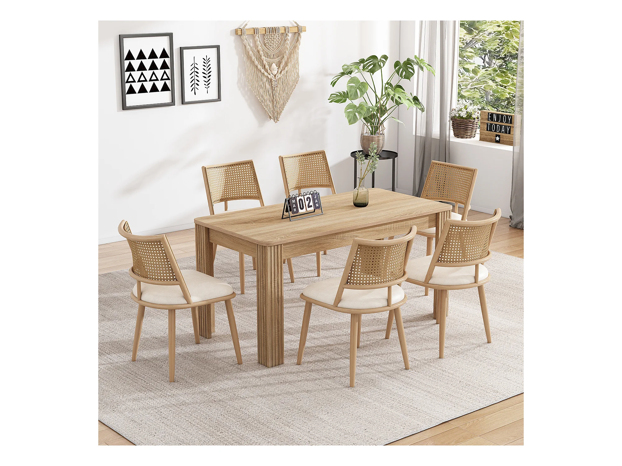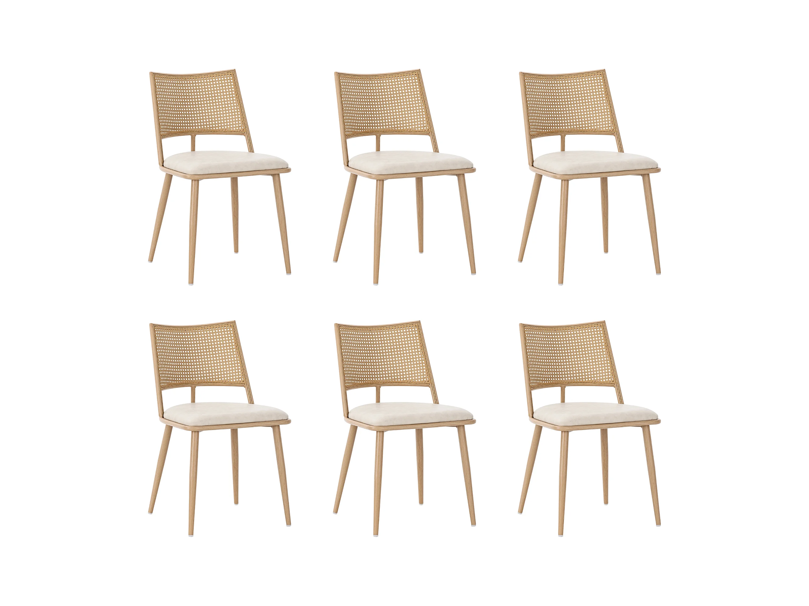 Lot de 6 chaises en rotin et Assise rembourrée en PU, beige