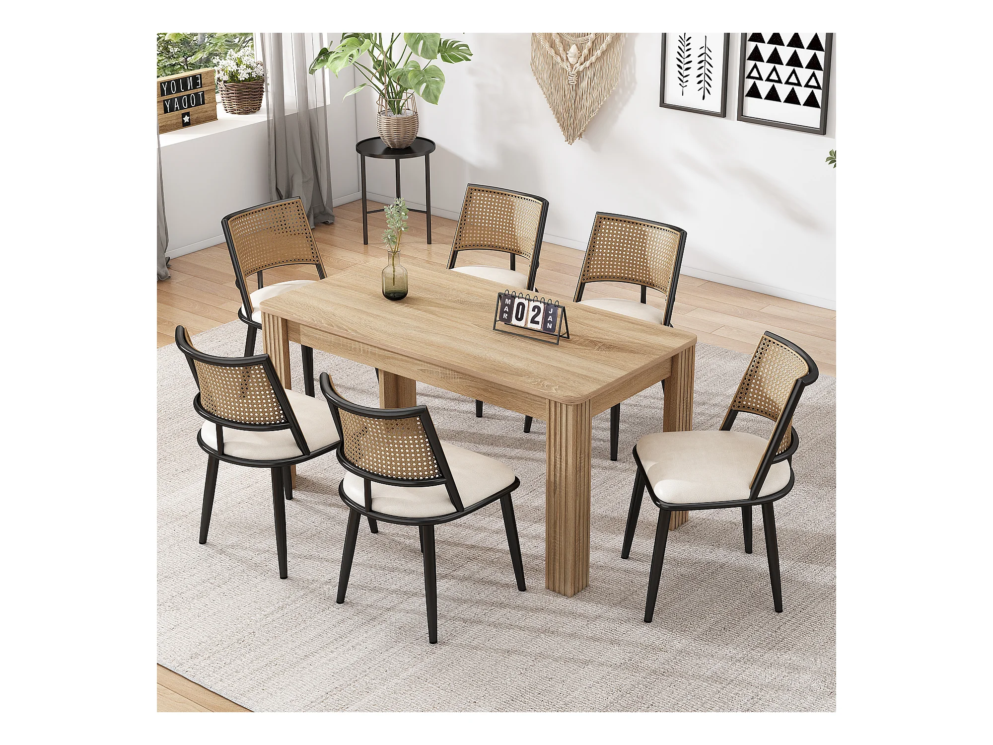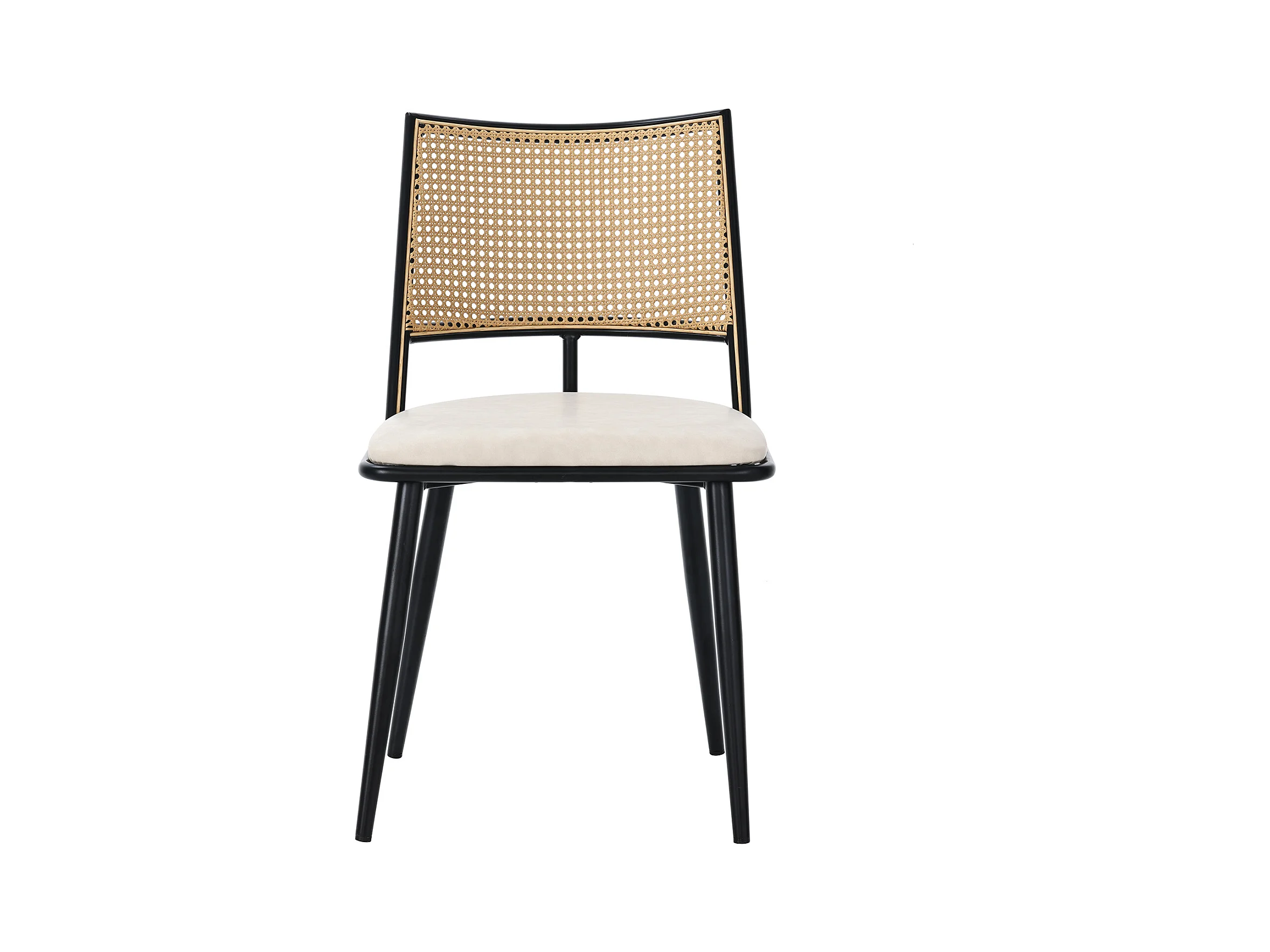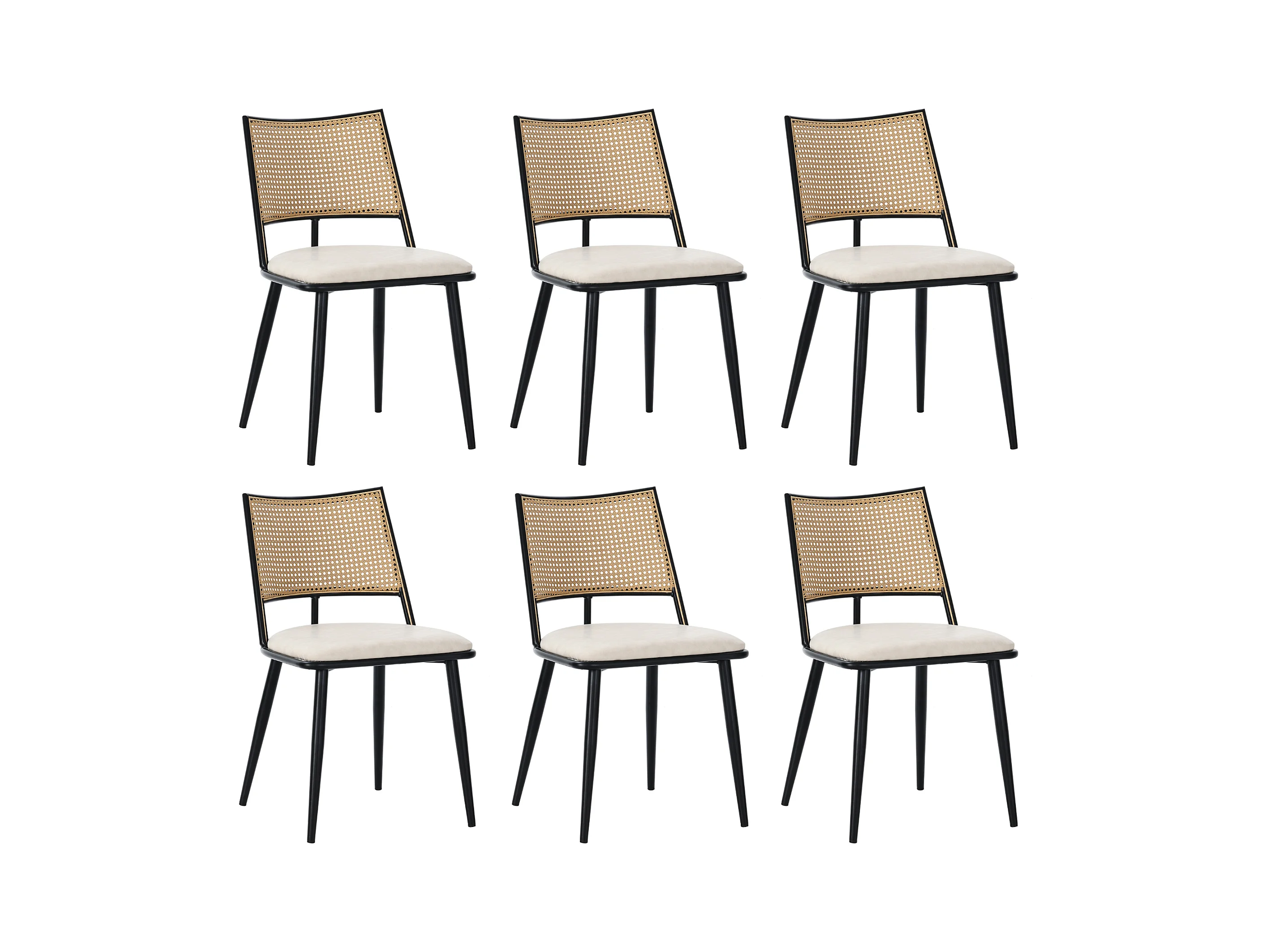 Lot de 6 chaises en rotin et Assise rembourrée en PU, noir