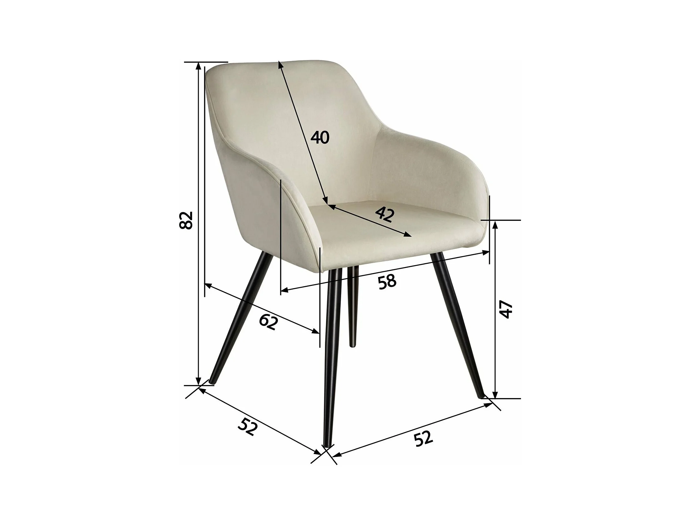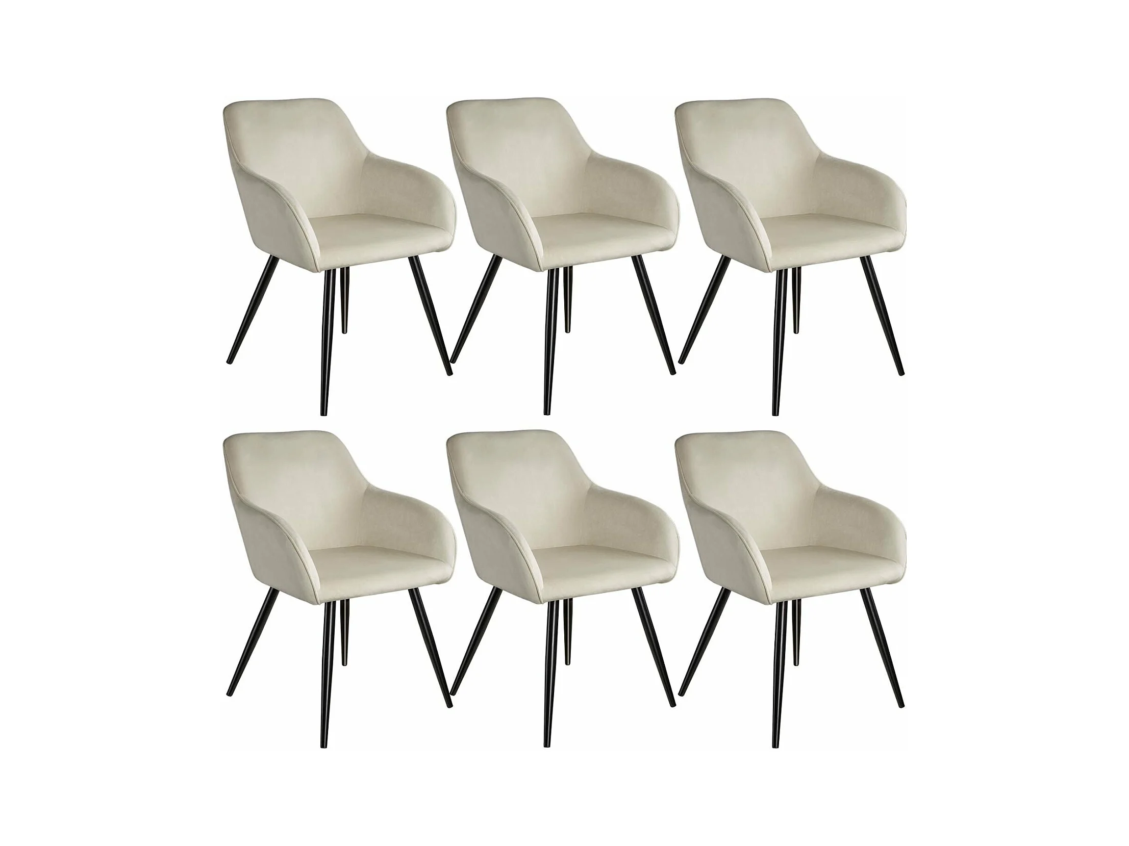 Lot de 6 chaises pieds noir siège de salon cuisine salle à manger design élégant velours beige 08_0000020