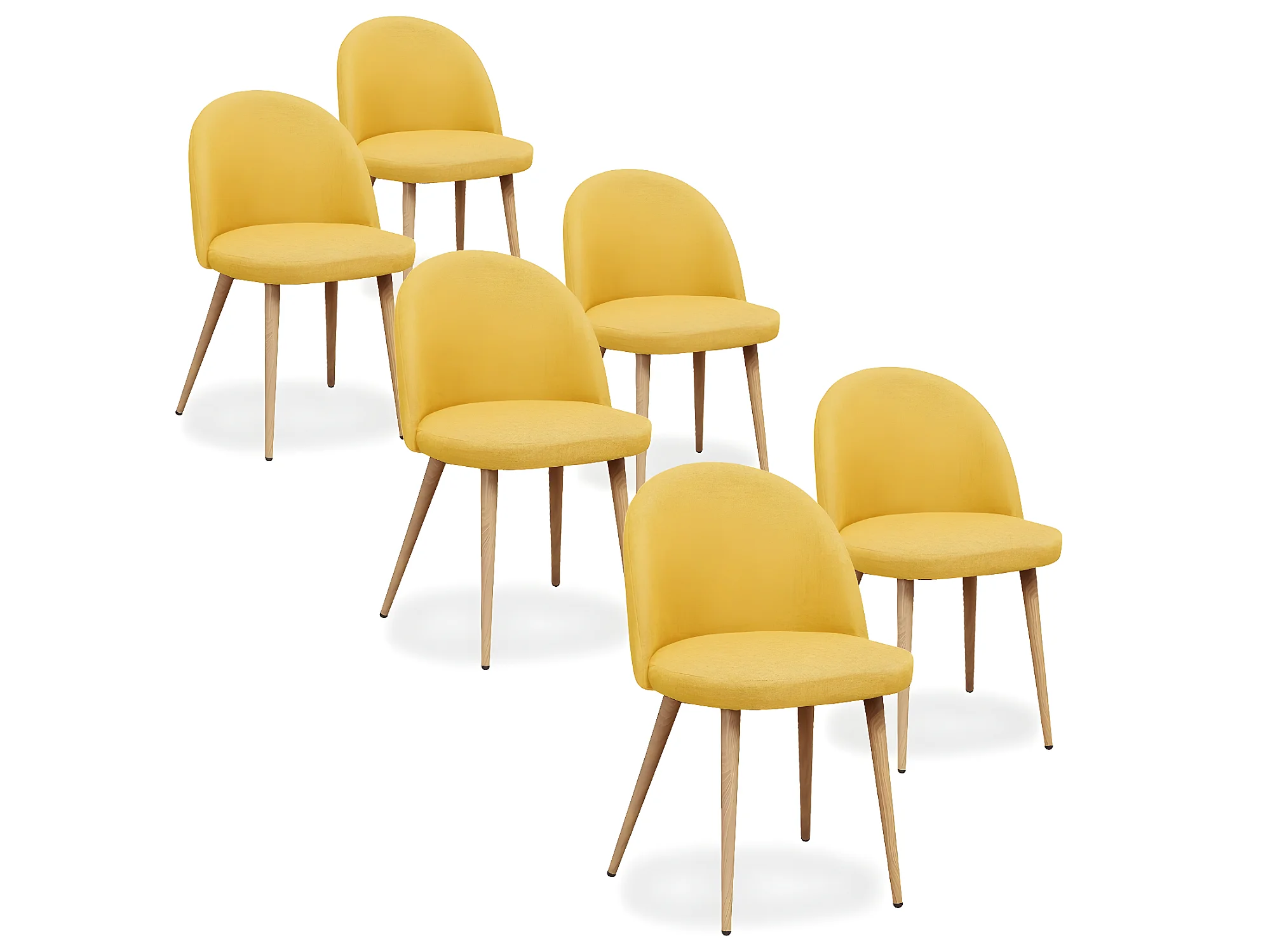 Lot de 6 chaises scandinaves Cecilia tissu Jaune
