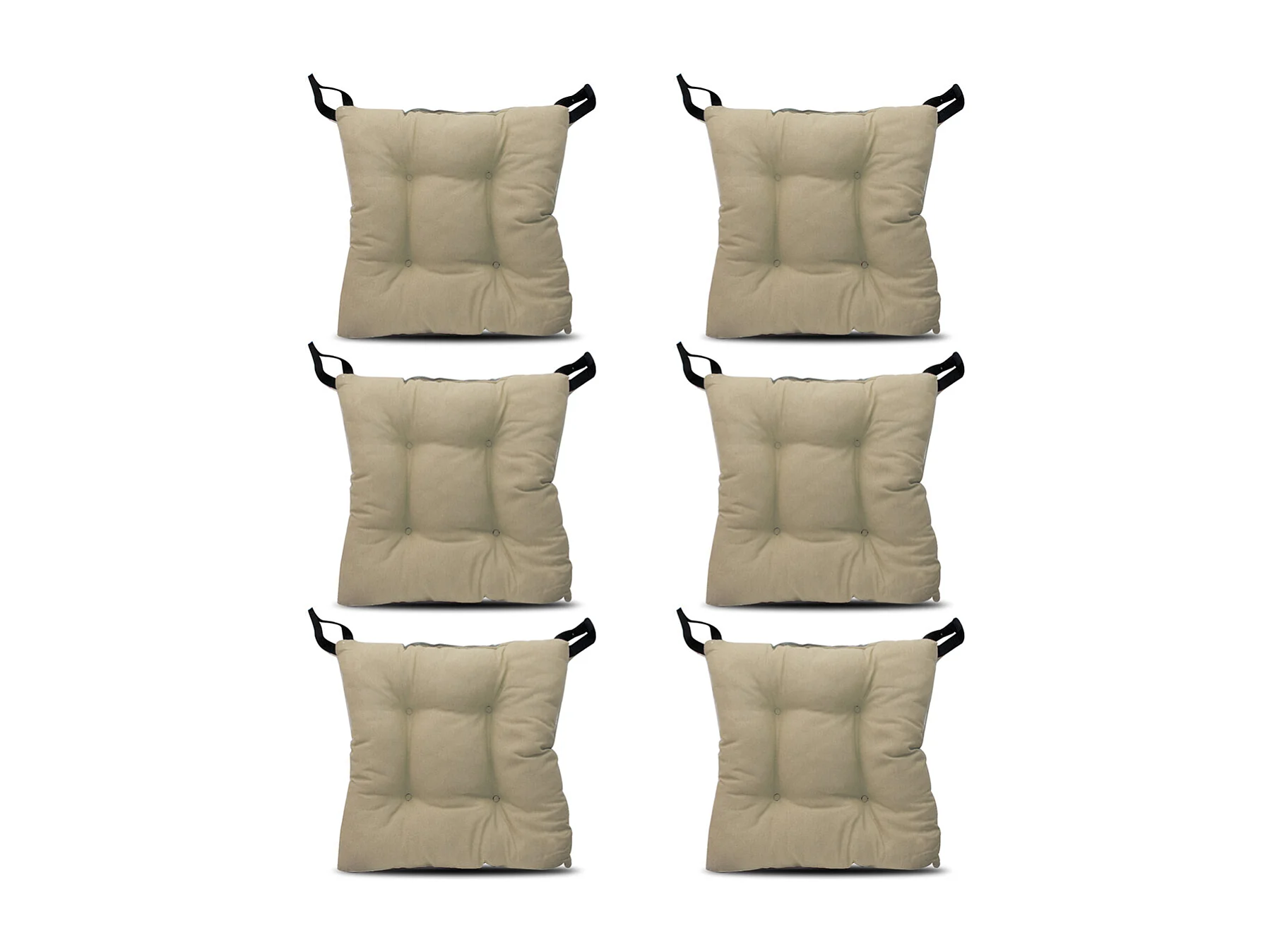 Lot de 6 coussin de chaise, galette de siège, coussin d'assise intérieur/extérieur coloris sable - Longueur 40 x Profondeur 40 cm