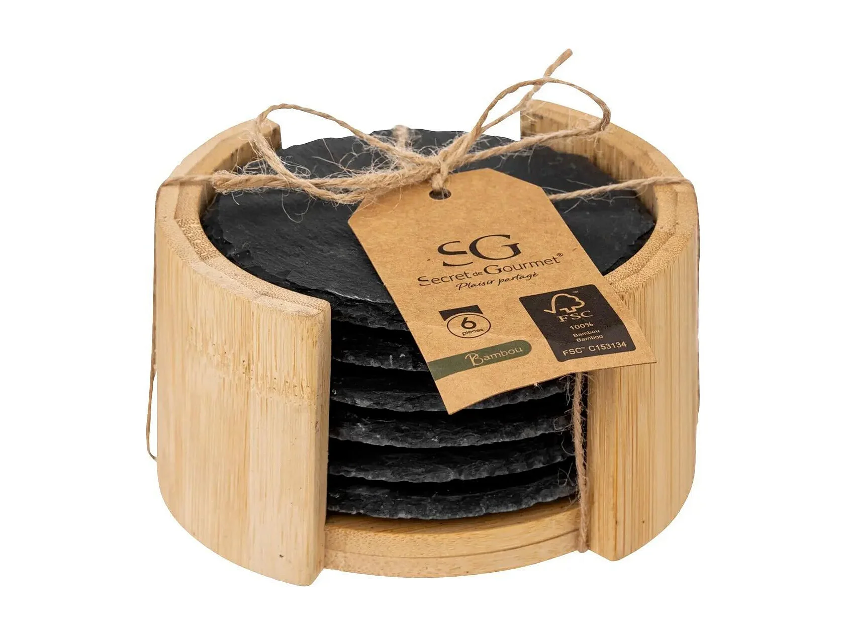 Lot de 6 Dessous de Verre "Ardoise" 10cm Noir