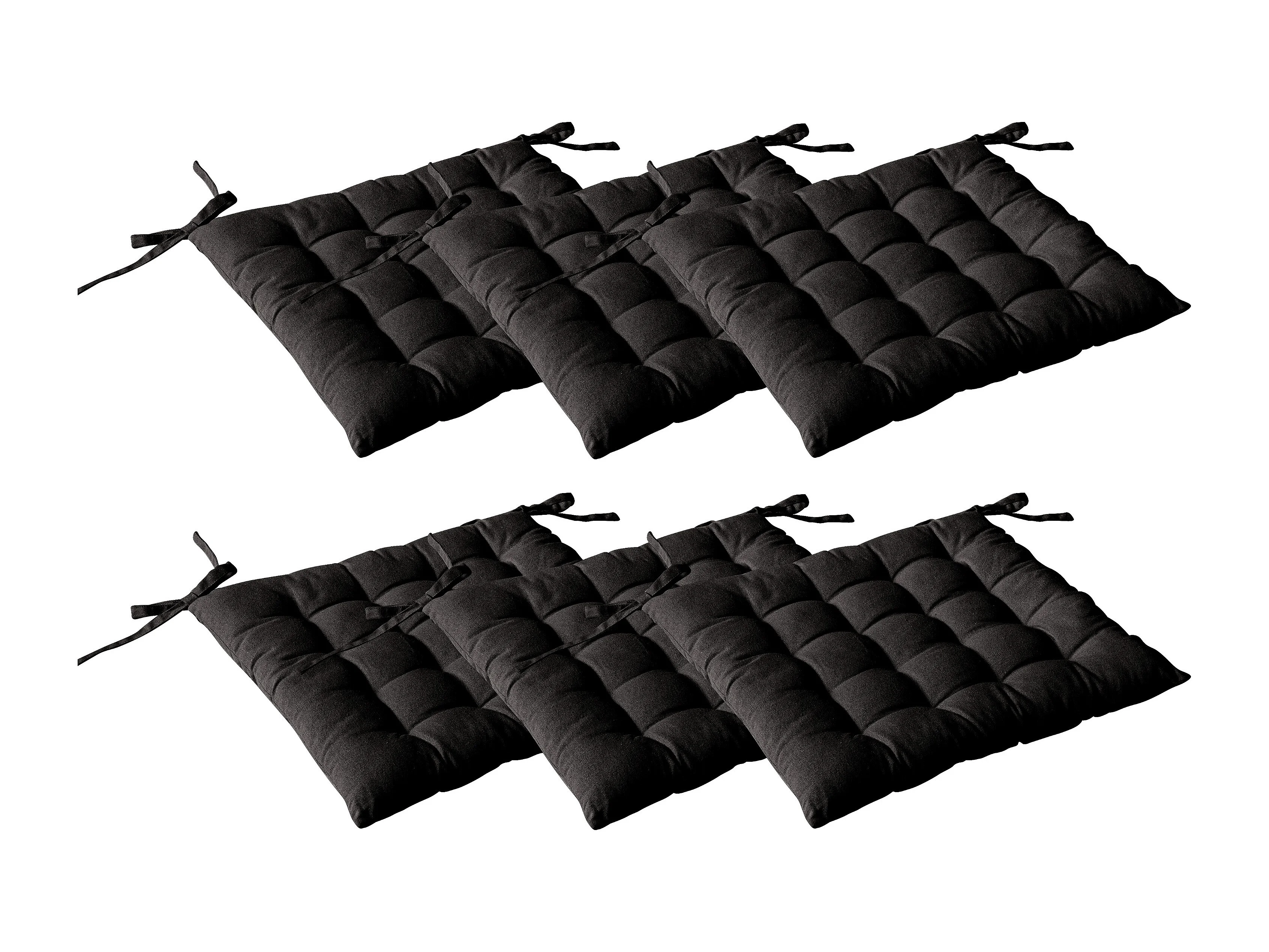 Lot de 6 galettes piquées, carré 38x38cm, noir, avec nouettes, 100% coton, collection Panama
