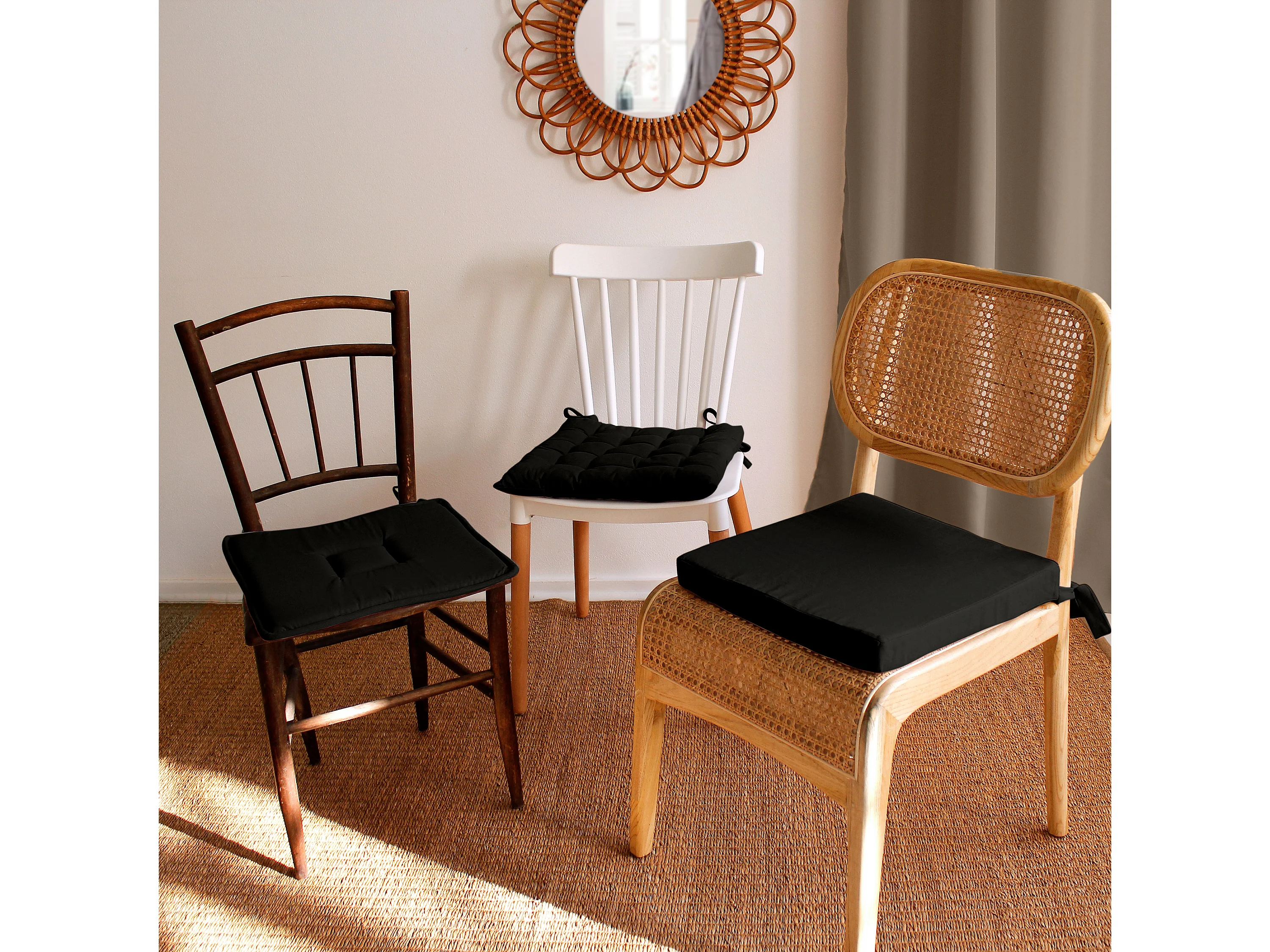 Dessus de chaise capitonné en coton 40x40x5 cm PANAMA noir, par Soleil d'Ocre