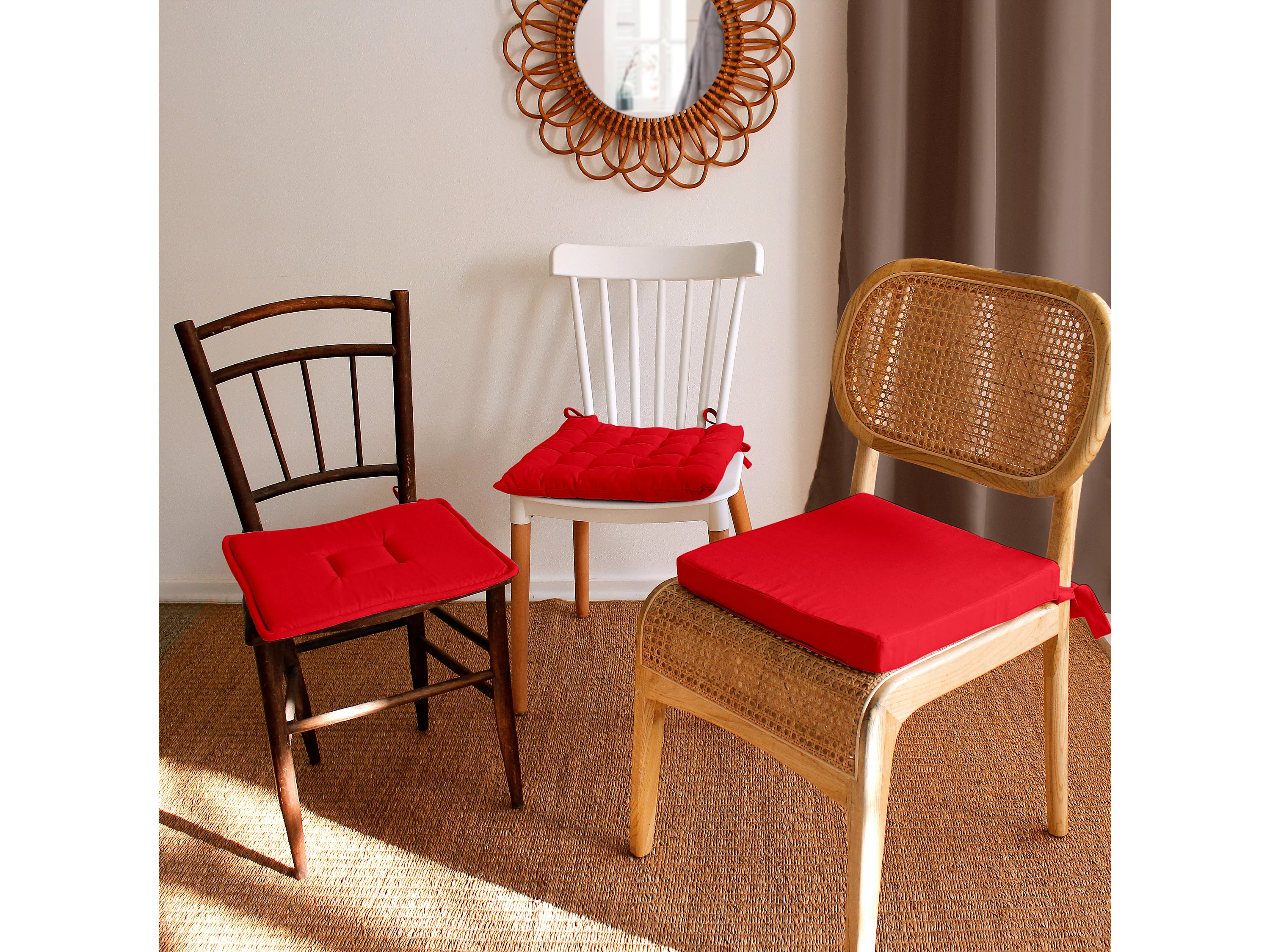 Galette de Chaise Piquée Uni "Panama" 38x38cm Rouge