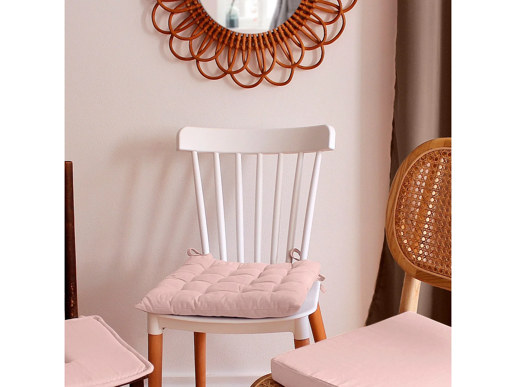 Galette de Chaise Piquée Uni "Panama" 38x38cm Vieux Rose
