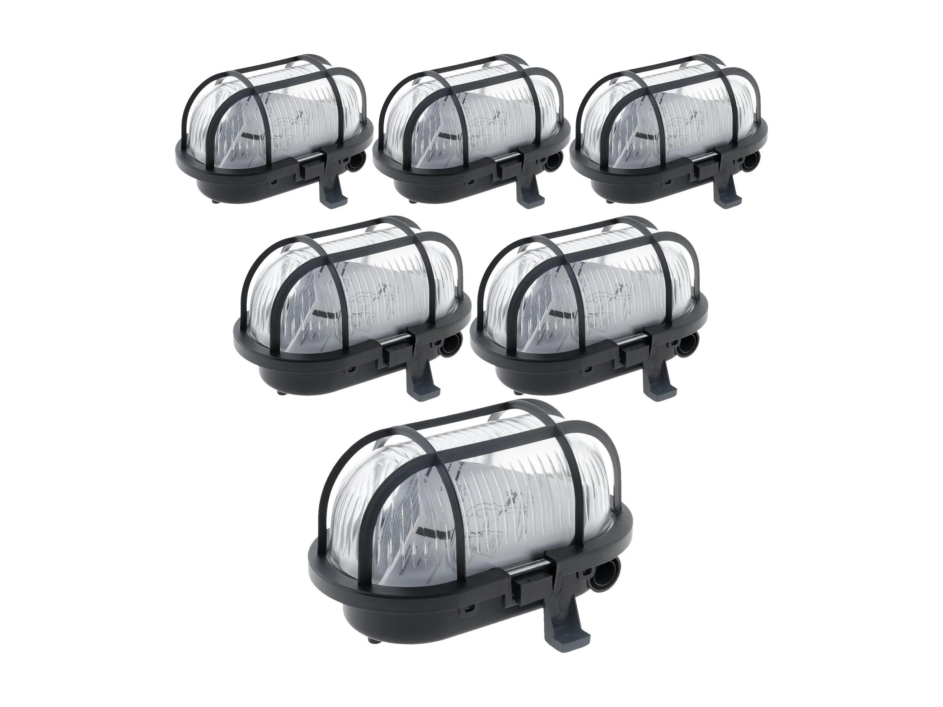 Lot de 6 hublots ovales 60W IP44 E27 Classe II - Noir - Zenitech
