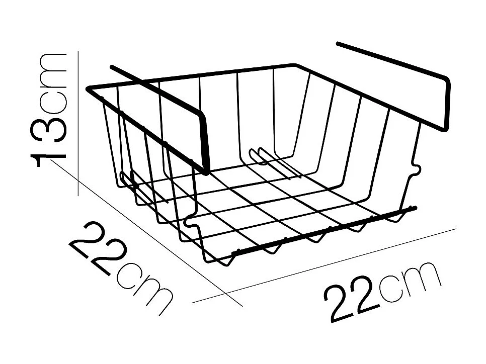 Lot de 12 panier suspendu, organisateur à suspendre, rangement placard cuisine, panier de rangement en métal noir - Longueur 22 x Profondeur 22 x Hauteur 13 cm