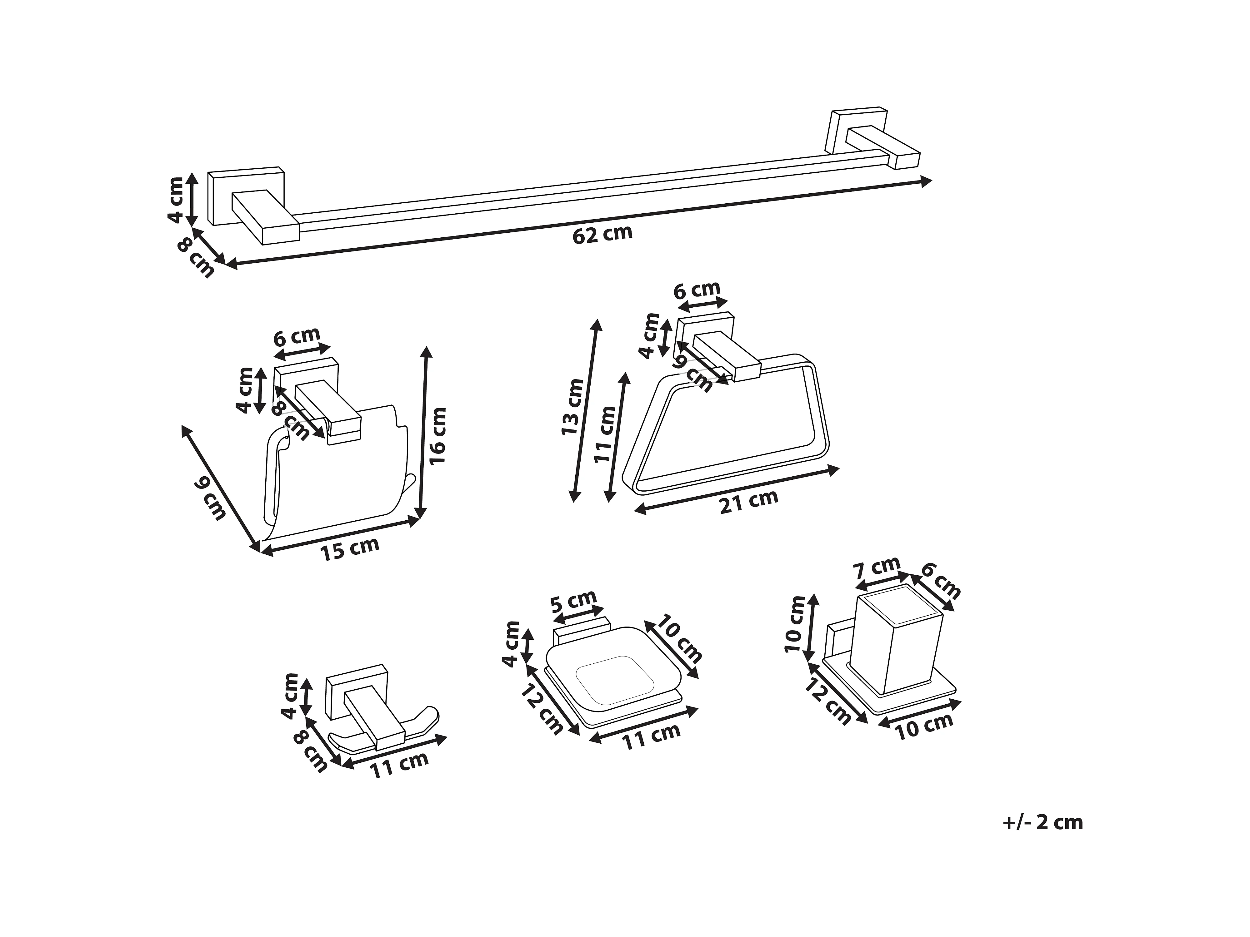 Lot de 6 pièces de quincaillerie pour salle de bain PARACAS avec porte-serviettes et crochets Argenté