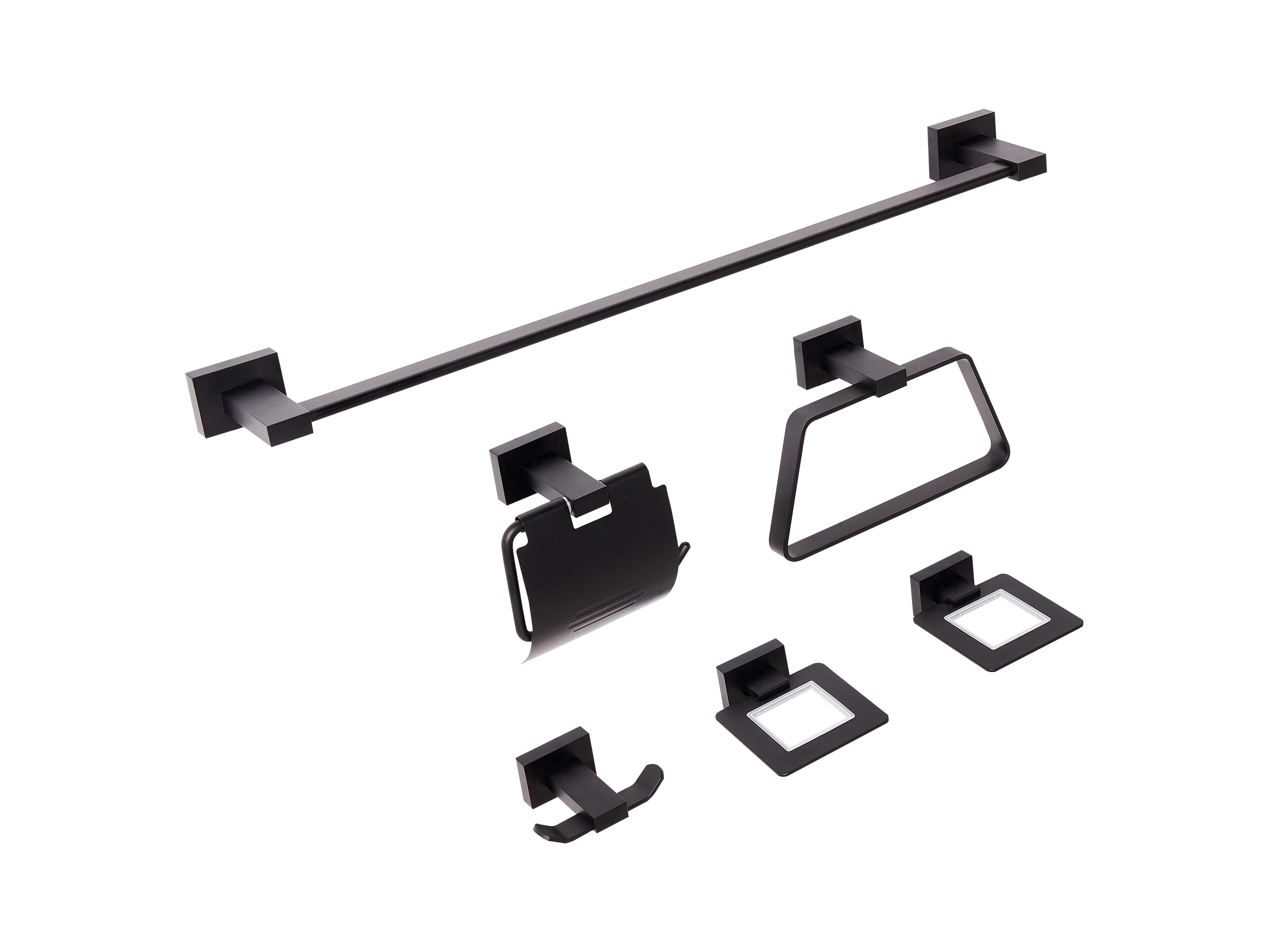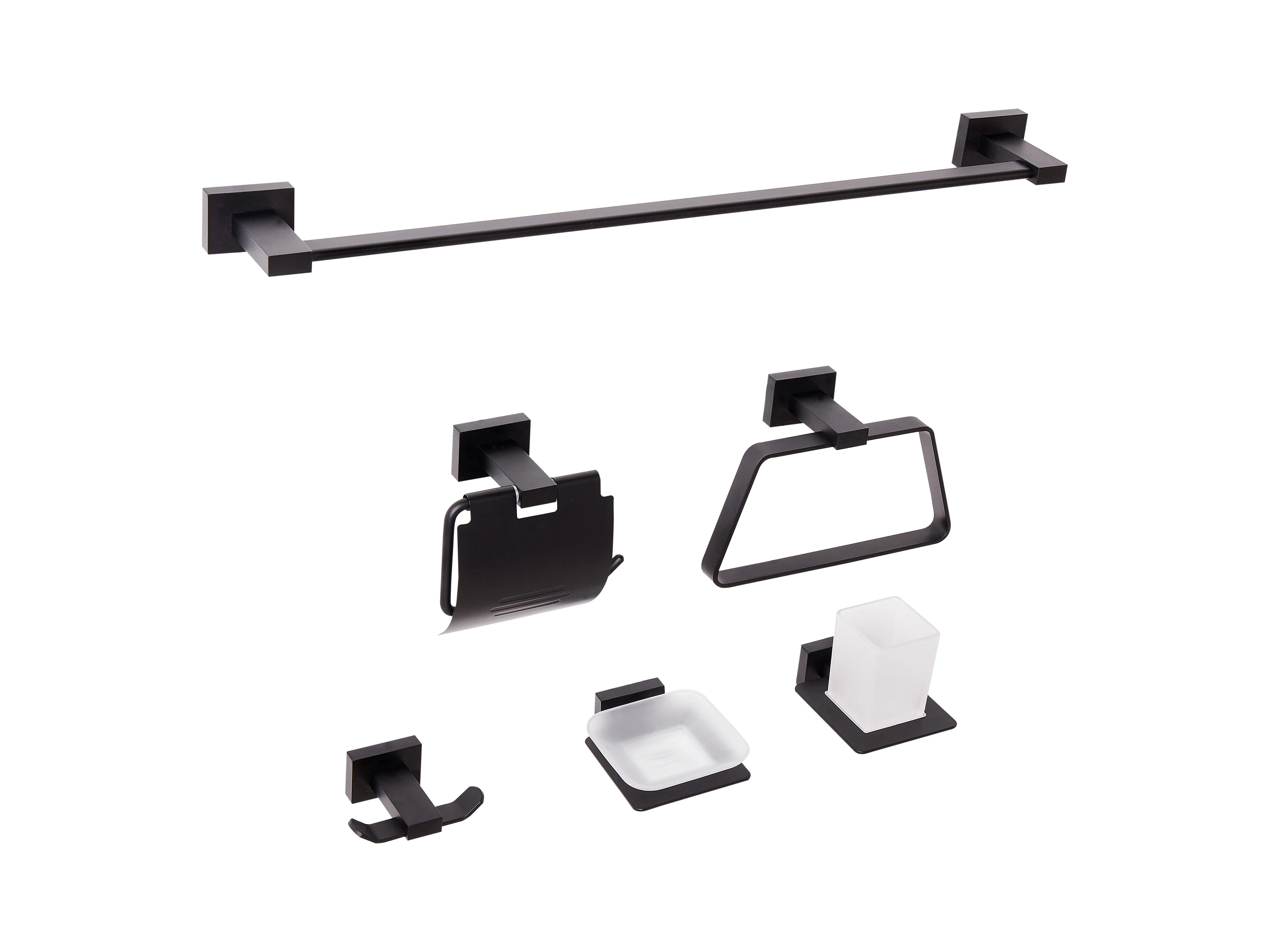 Lot de 6 pièces de quincaillerie pour salle de bain TOCOPILLA avec porte-serviettes et crochets Noir
