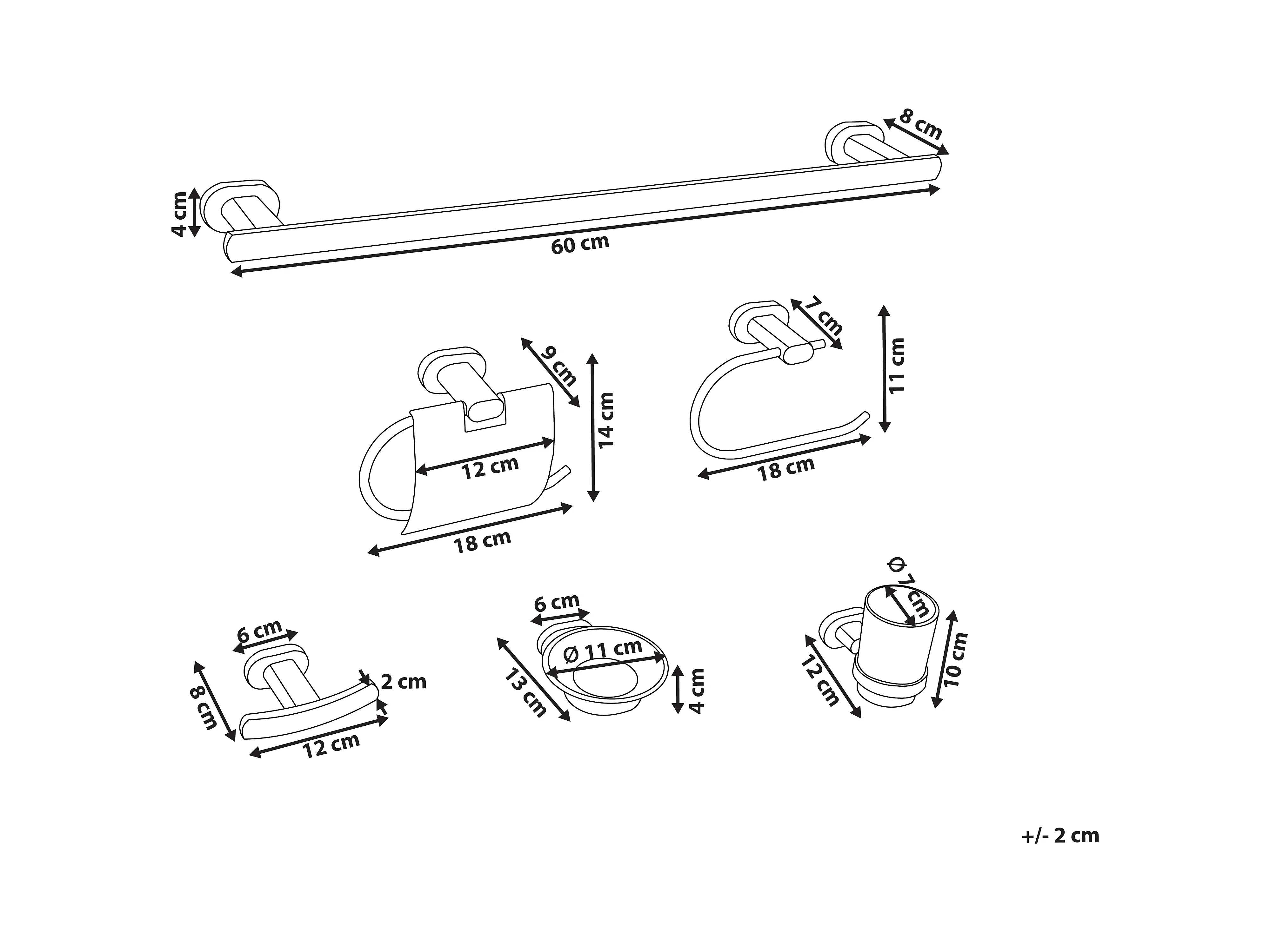 Lot de 6 pièces de quincaillerie pour salle de bain ZARUMA avec porte-serviettes et crochets Argenté