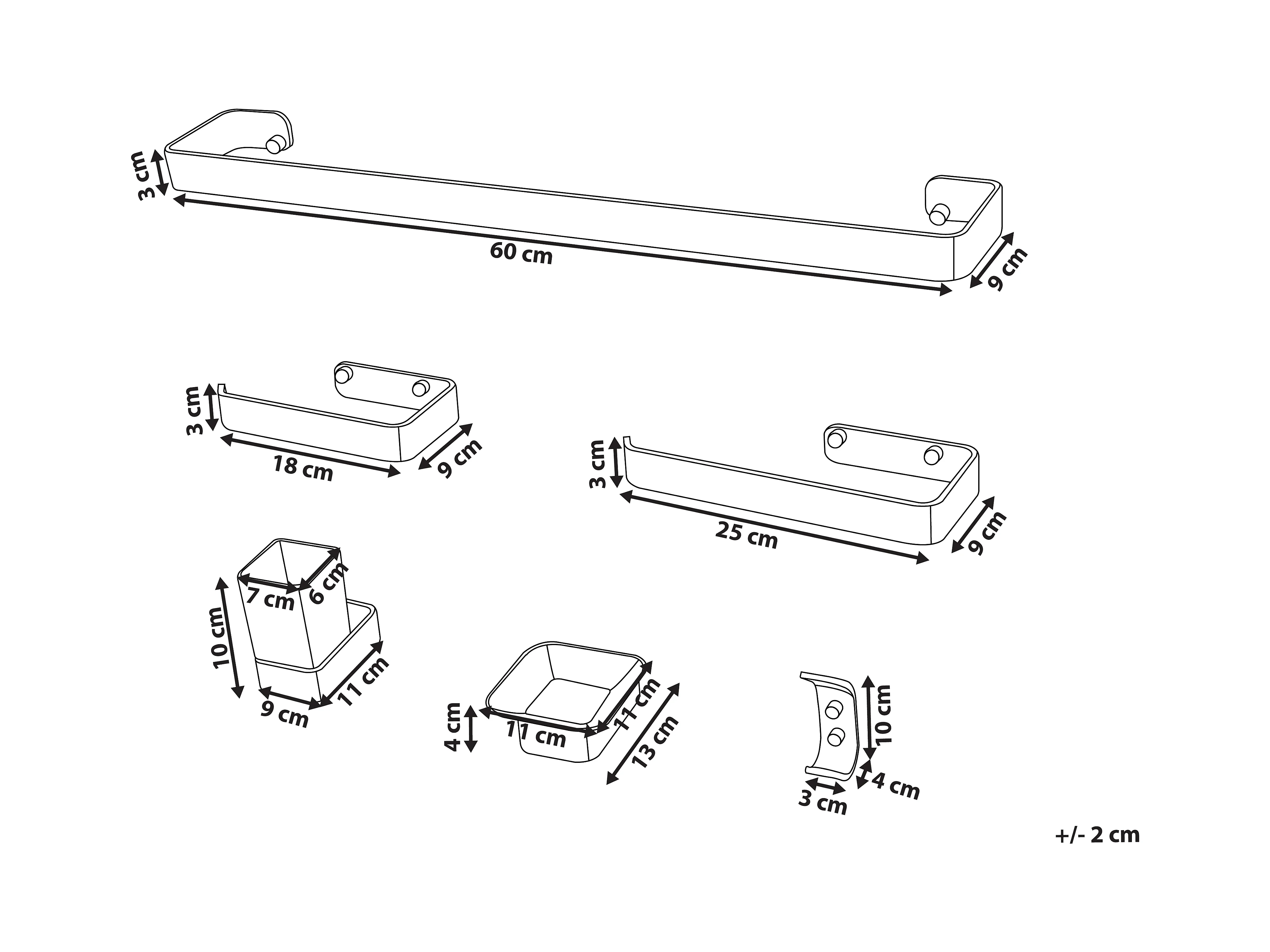 Lot de 6 pièces de quincaillerie pour salle de bain RIOHACHA avec porte-serviettes et crochets Argenté