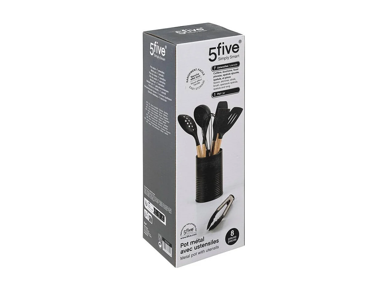 Lot de 7 Ustensiles avec Pot "Acacia" 30cm Noir