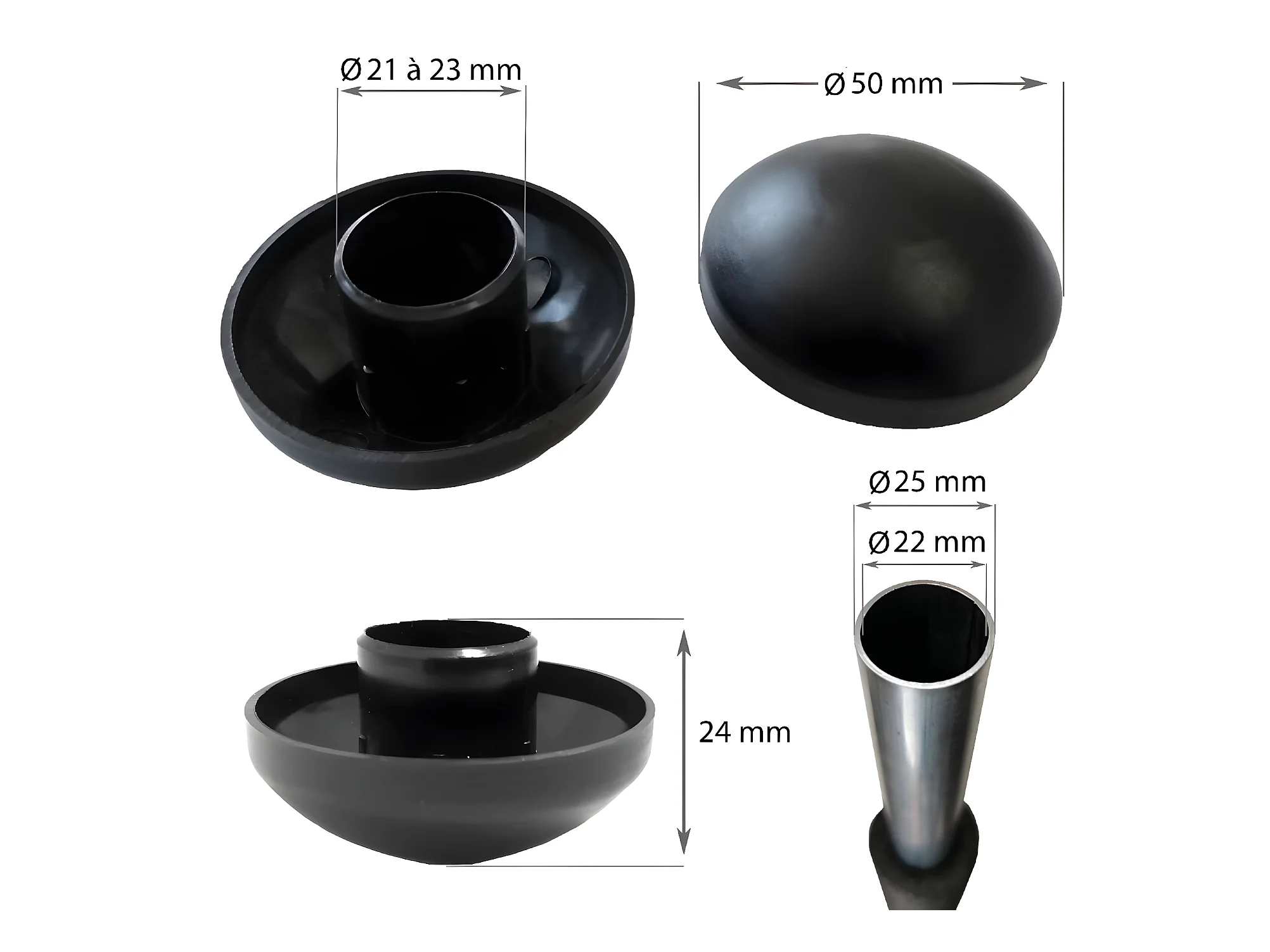 Lot de 8 capuchons de poteaux noir 25mm pour trampoline